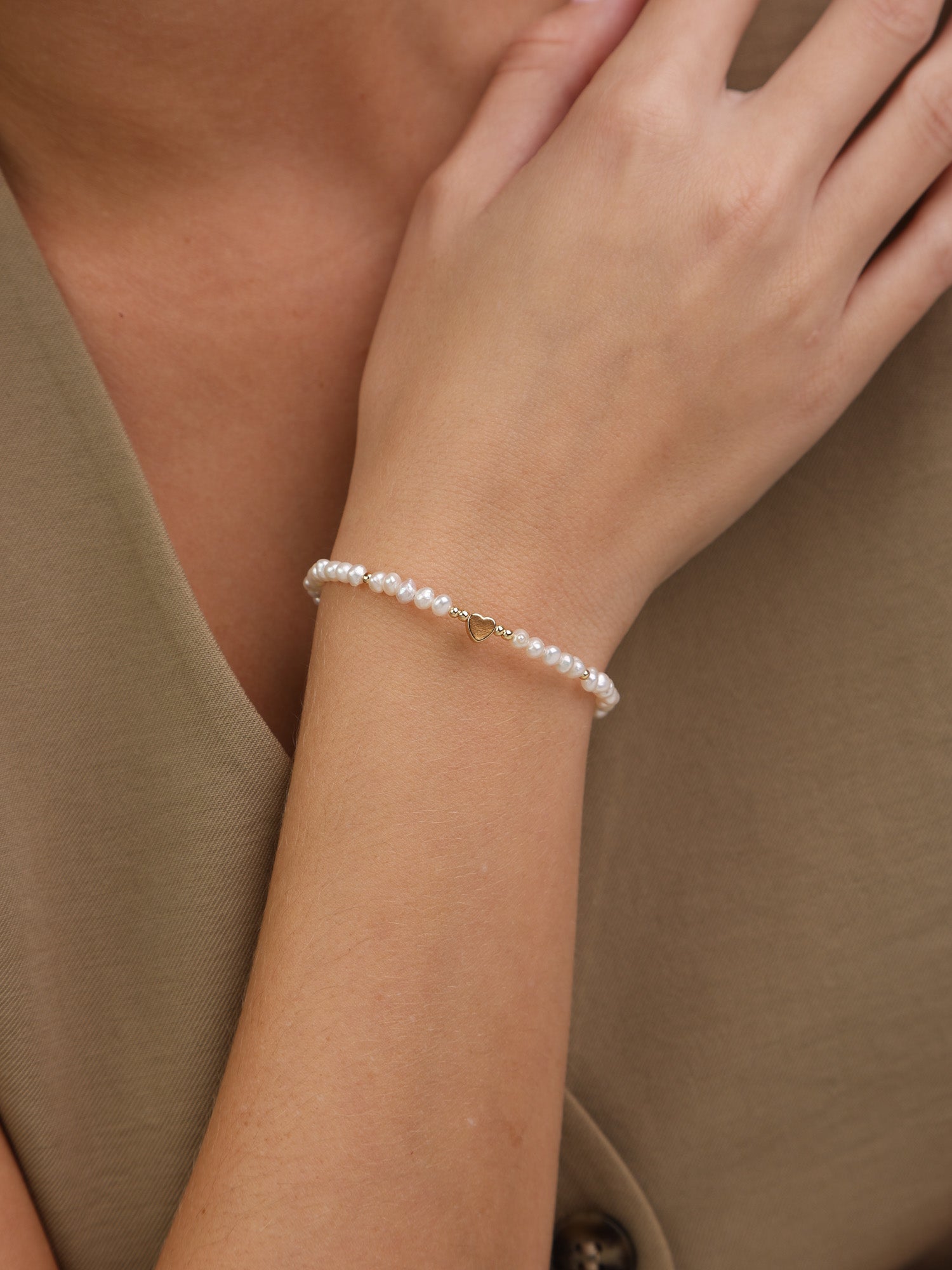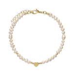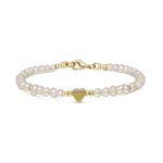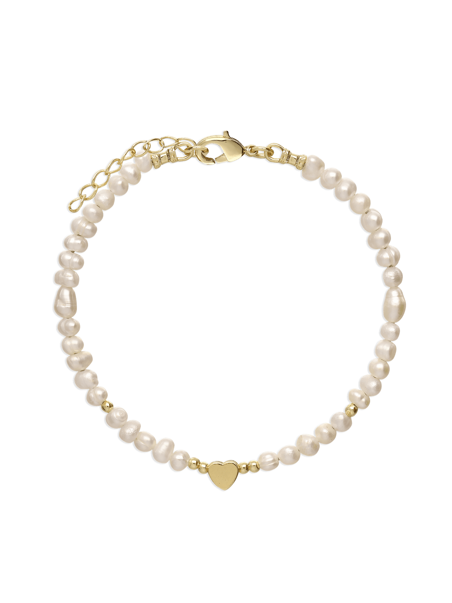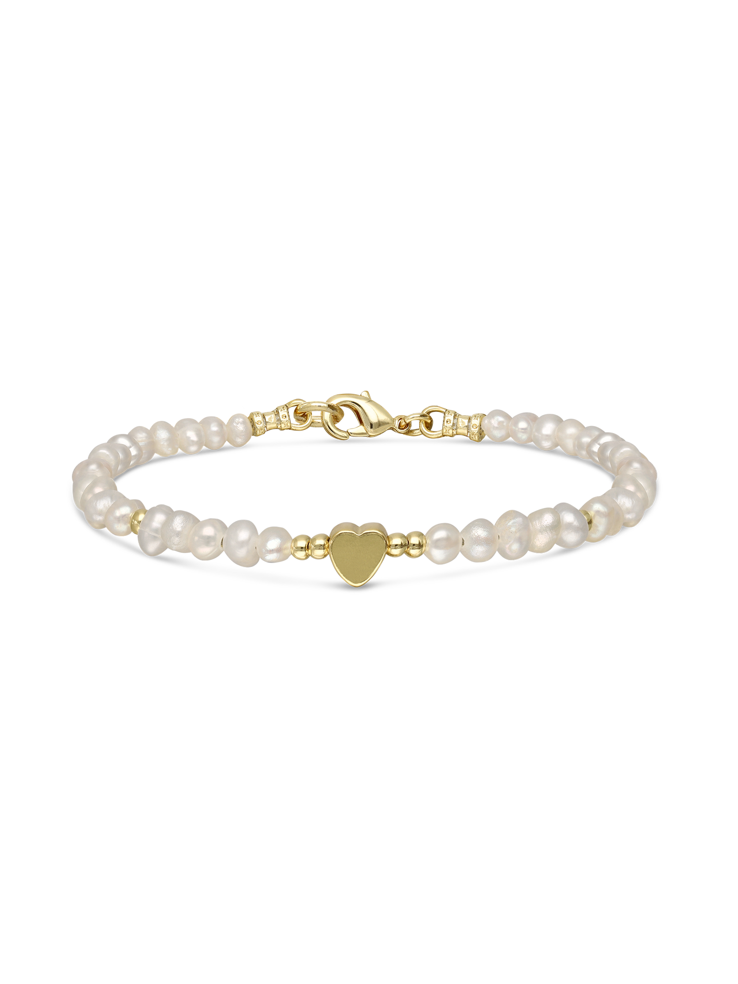 pulseira de pérolas, Banhado a Ouro, Pérola cultivada, Branco, Coração, Círculo, Dourado, 3.10 gramas.