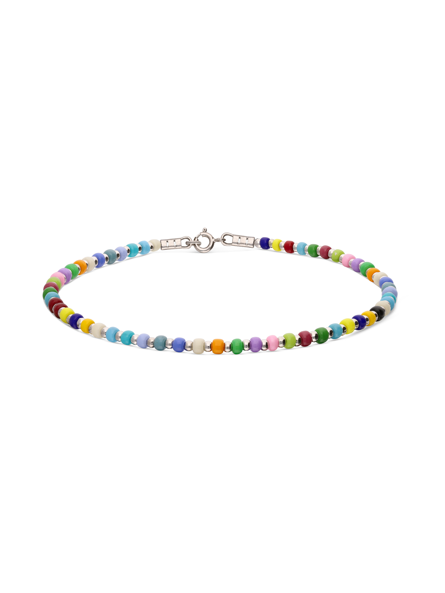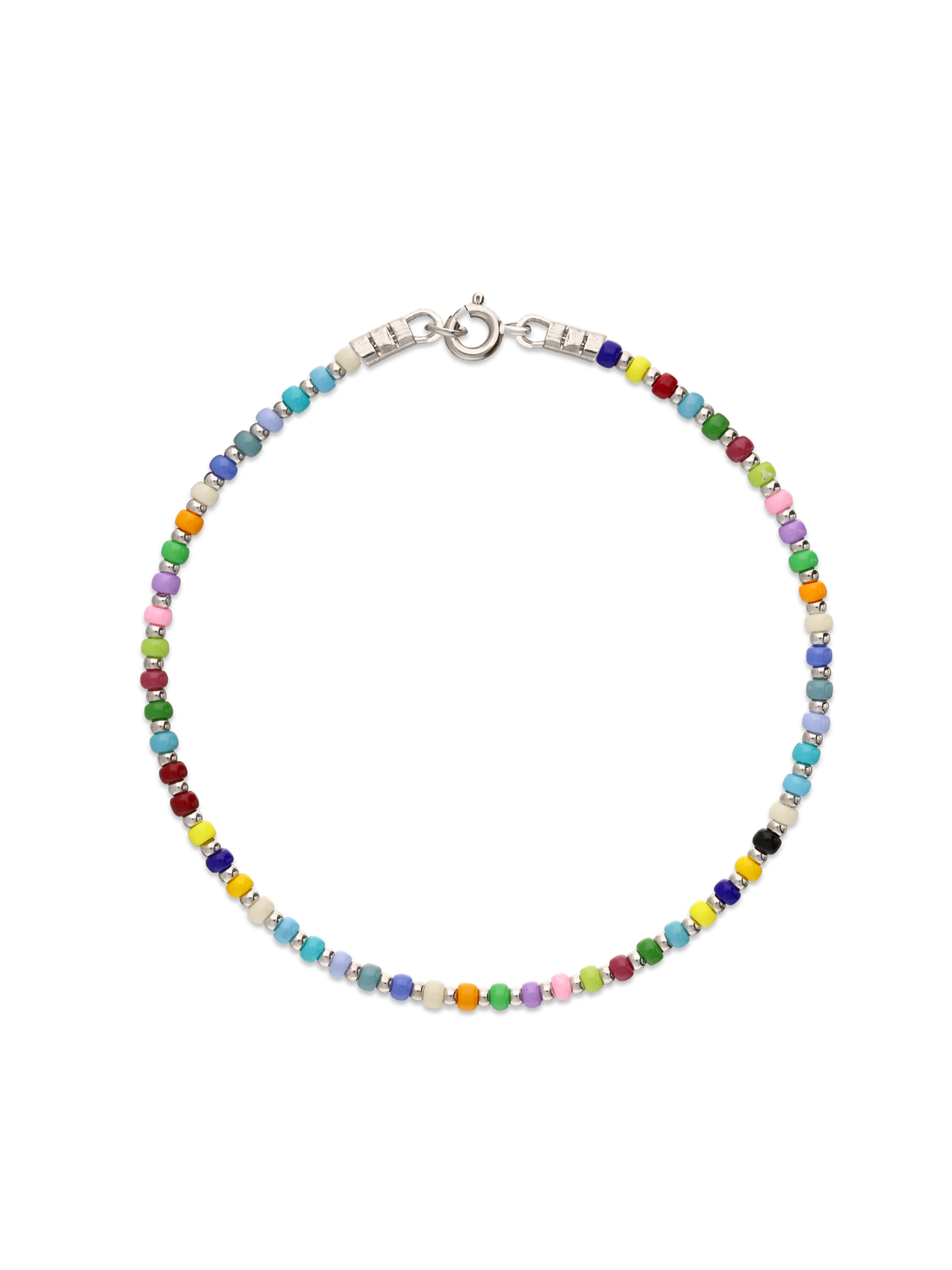 Pulseira para Tornozelo, Prata de lei 925, Vidro cristal, Colorido, Círculo, Feito à mão,,, Prateado, 3.50 gramas.