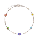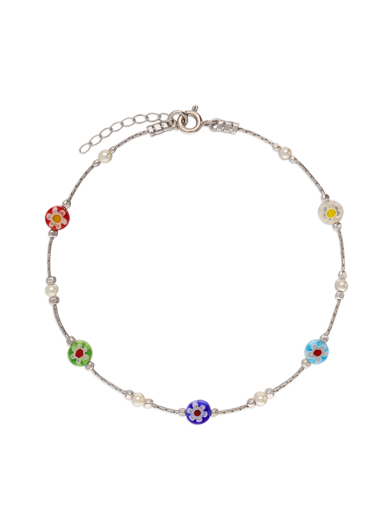 Pulseira para Tornozelo, Prata de lei 925, Vidro cristal, Pérola sintética, Colorido, Círculo, Feito à mão,, Prateado, 3.04 gramas.