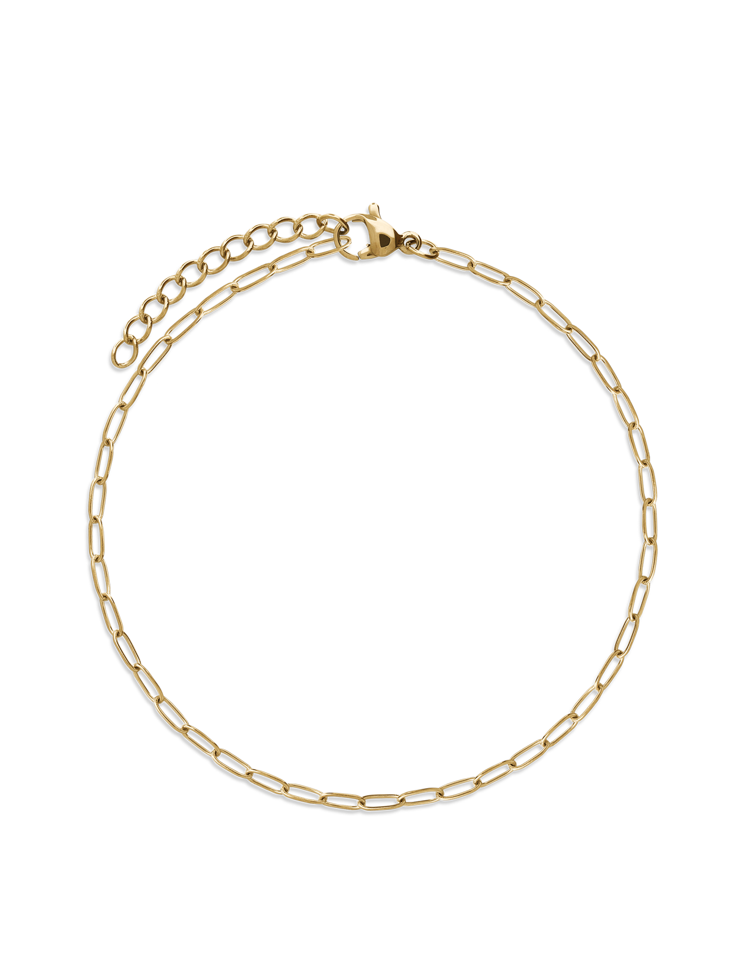 Pulseira para Tornozelo, Aço inoxidável, Nenhuma pedra, Sem cor, Círculo, Dourado, 1.35 gramas.