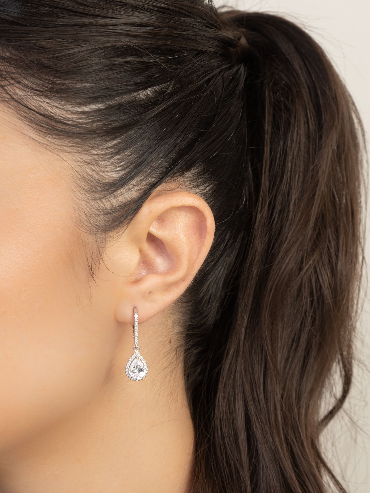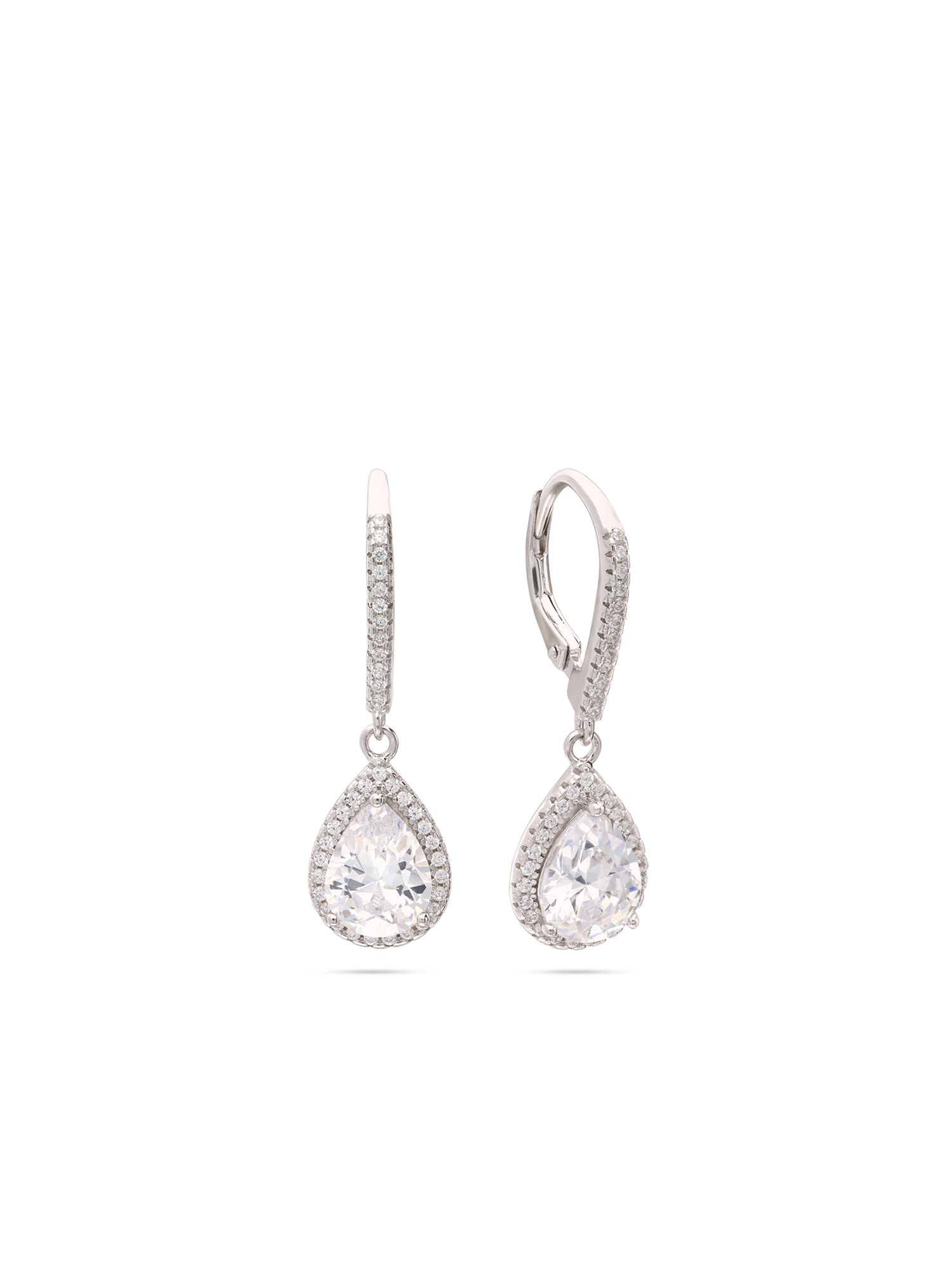 Pendentes, Prata de lei 925, Zircónia de cultivo, Claro, Lágrima, Feito à mão,, Prateado, comprimento do brinco: 1.5 cm, largura do brinco: 1.0 cm, 4.16 gramas.