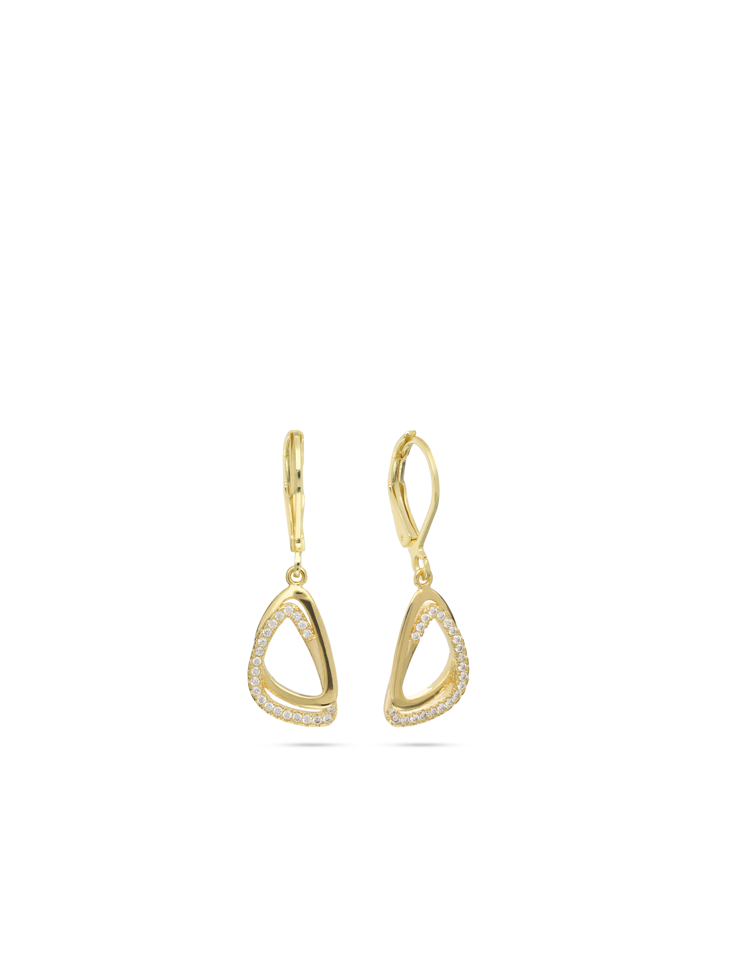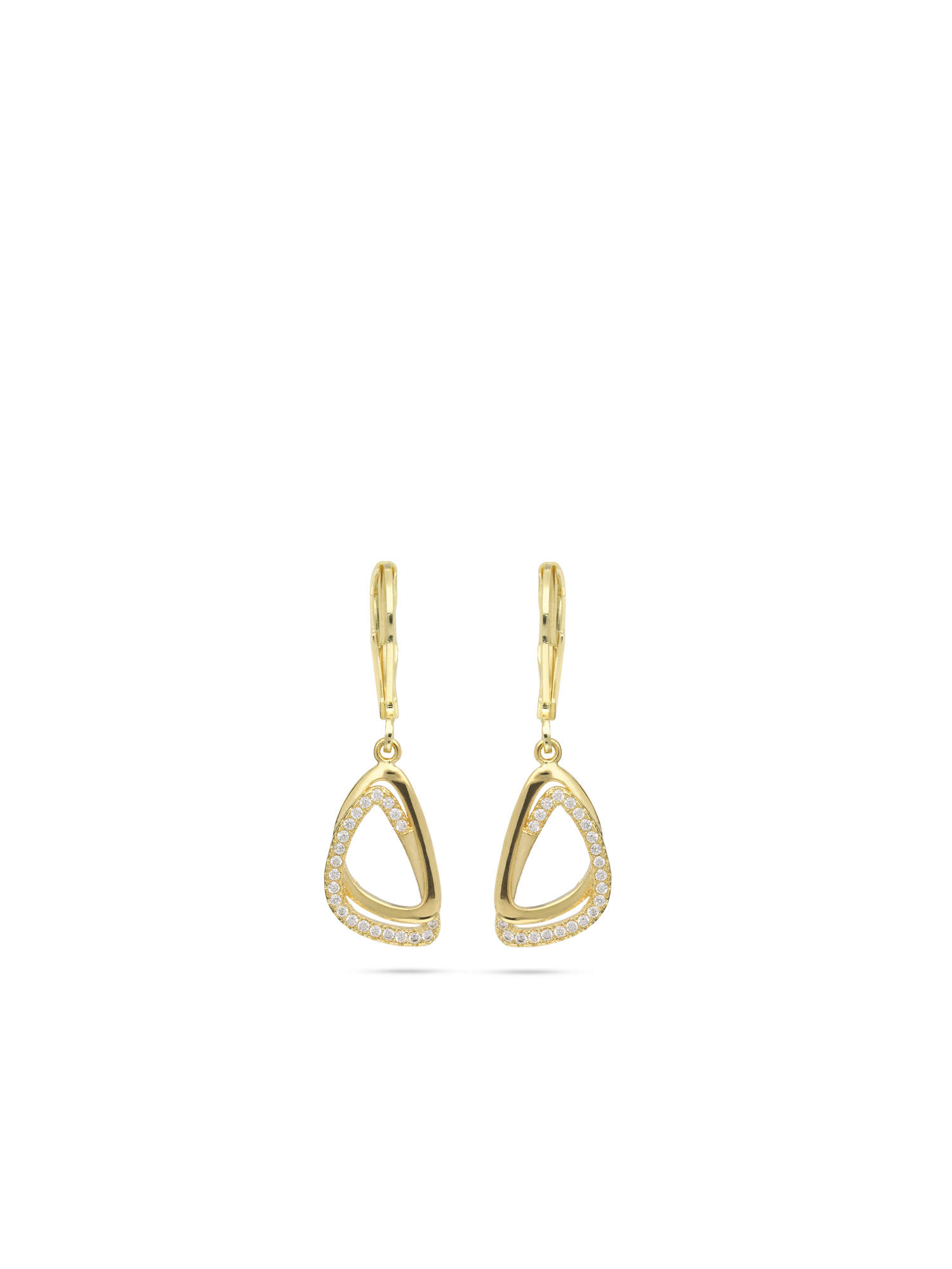 Pendentes, Banhado a Ouro, Zircónia de cultivo, Claro, Triângulo, Feito à mão,, Dourado, comprimento do brinco: 1.7 cm, largura do brinco: 0.9 cm, 1.97 gramas.