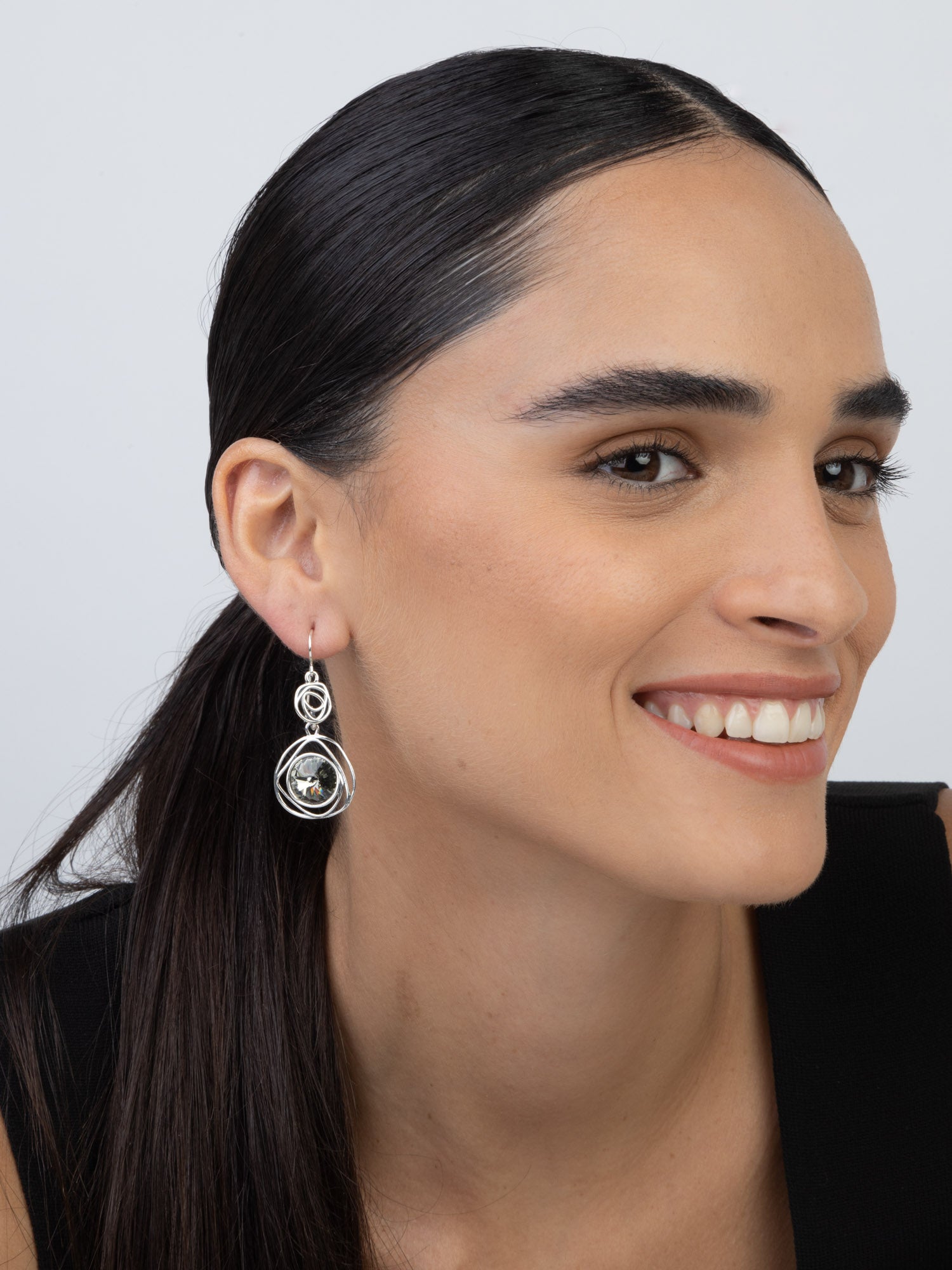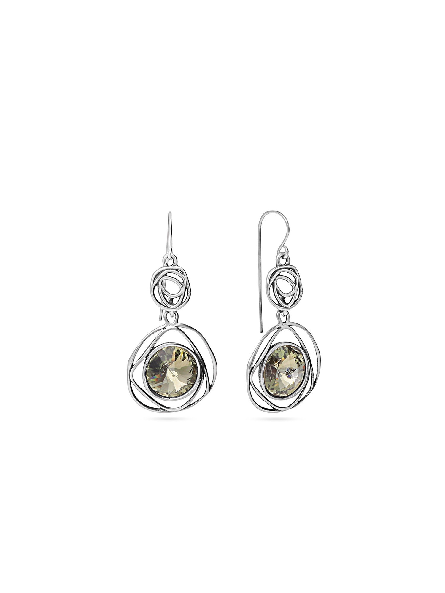 Pendentes, Prata, Cristal Swarovski de cultivo, Cinzento, Círculo, Feito à mão,, Prateado, comprimento do brinco: 5.0 cm, largura do brinco: 2.0 cm, 6.10 gramas.