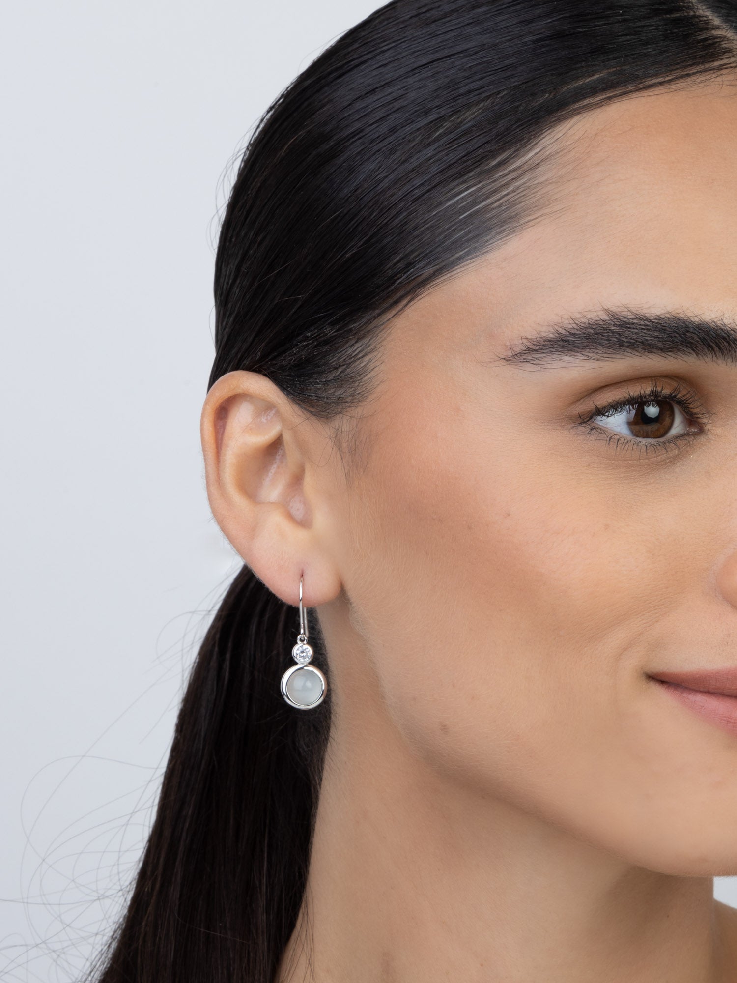Pendentes, Prata de lei 925, Zircónia de cultivo, Calcedónia de cultivo, Verde, Claro, Círculo, Feito à mão,, Prateado, comprimento do brinco: 3.0 cm, largura do brinco: 1.0 cm, 3.60 gramas.