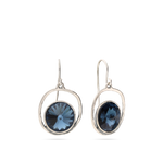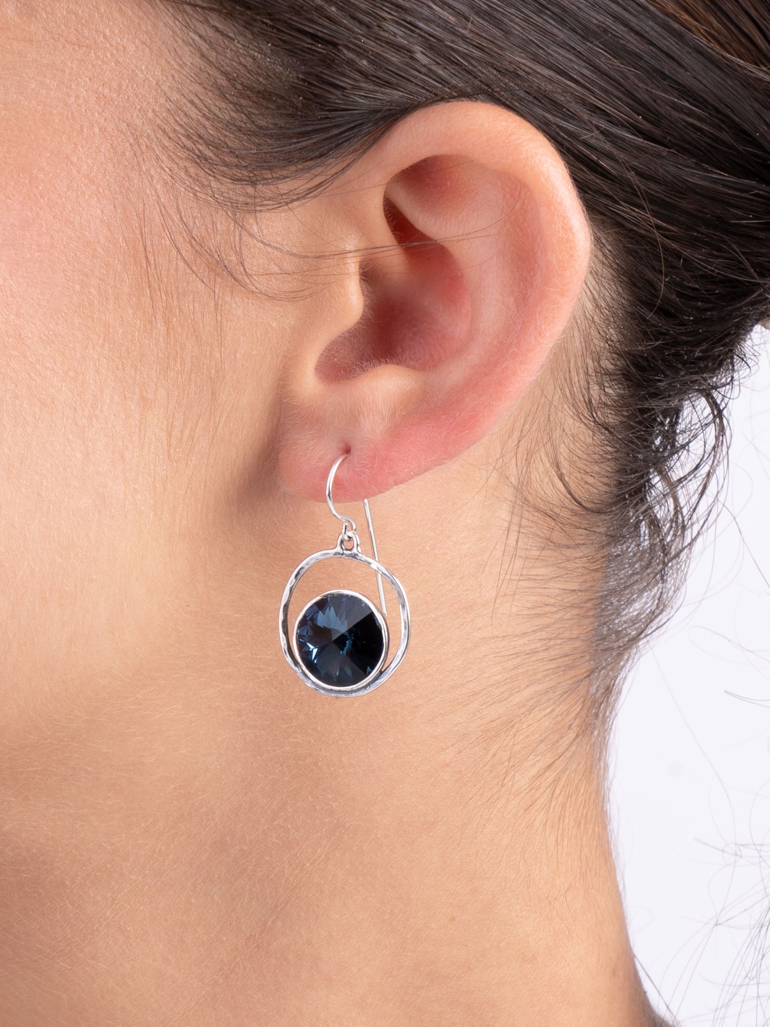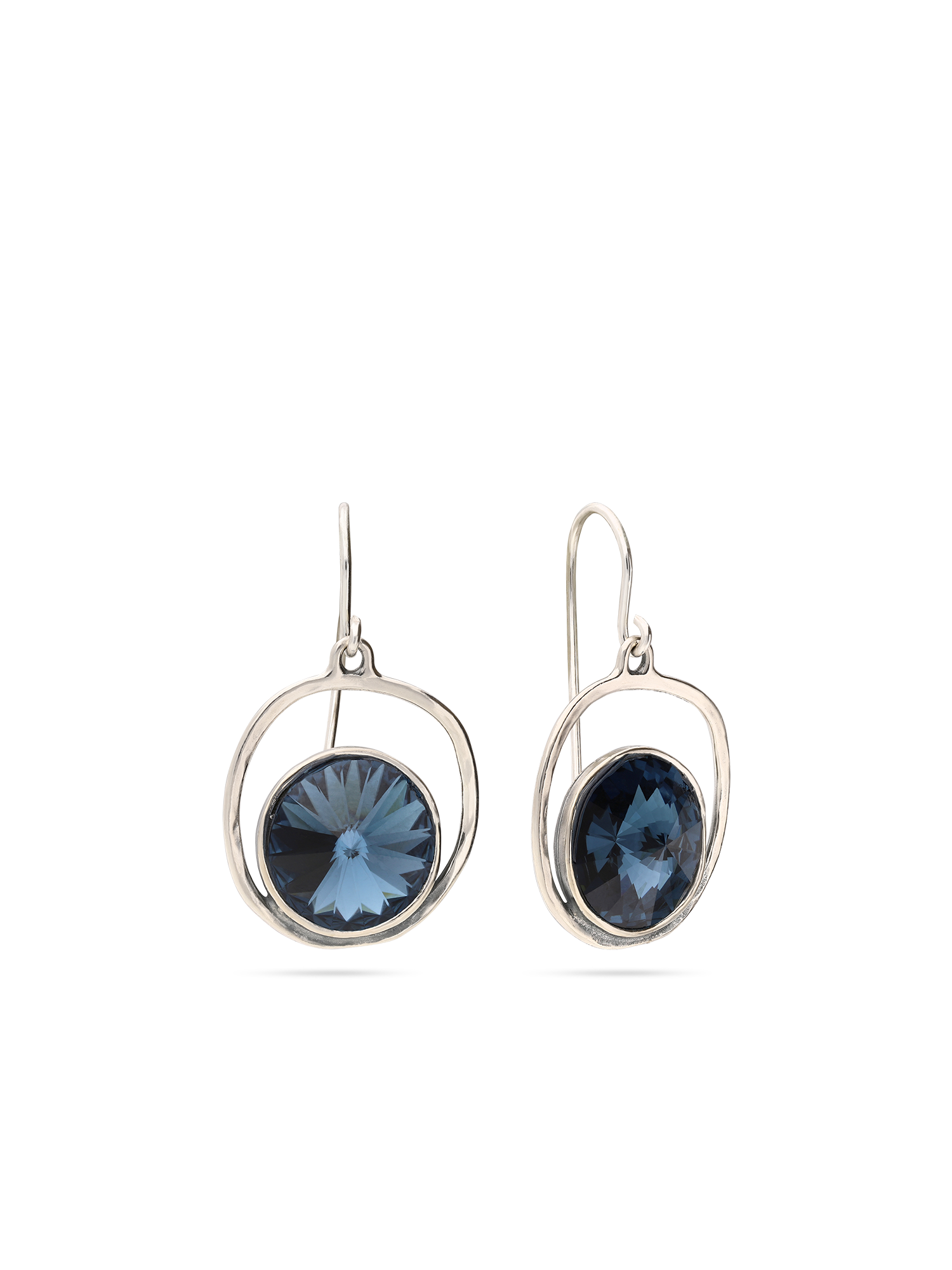 Pendentes, Prata, Cristal Swarovski de cultivo, Azul, Círculo, Feito à mão,, Prateado, comprimento do brinco: 2.5 cm, largura do brinco: 2.0 cm, 4.90 gramas.