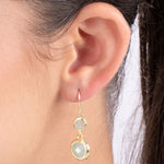 Pendentes, Banhado a Ouro, Vidro cristal, Verde, Círculo, Feito à mão,, Dourado, comprimento do pendente: 2.5 cm, largura do pendente: 1.0 cm, 3.80 gramas.