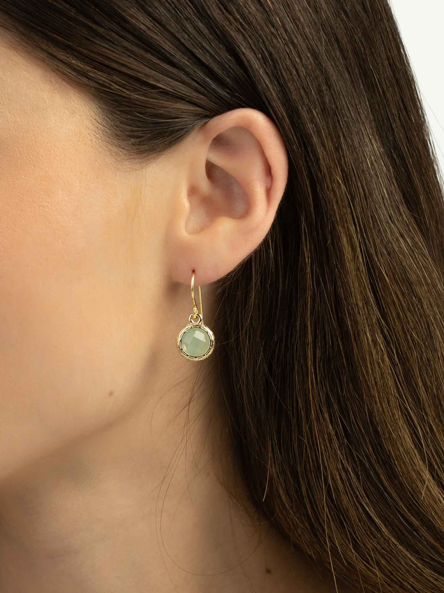 Pendentes, Banhado a Ouro, Vidro cristal, Verde, Círculo, Feito à mão,, Dourado, comprimento do brinco: 1.5 cm, largura do brinco: 1.2 cm, 2.95 gramas.
