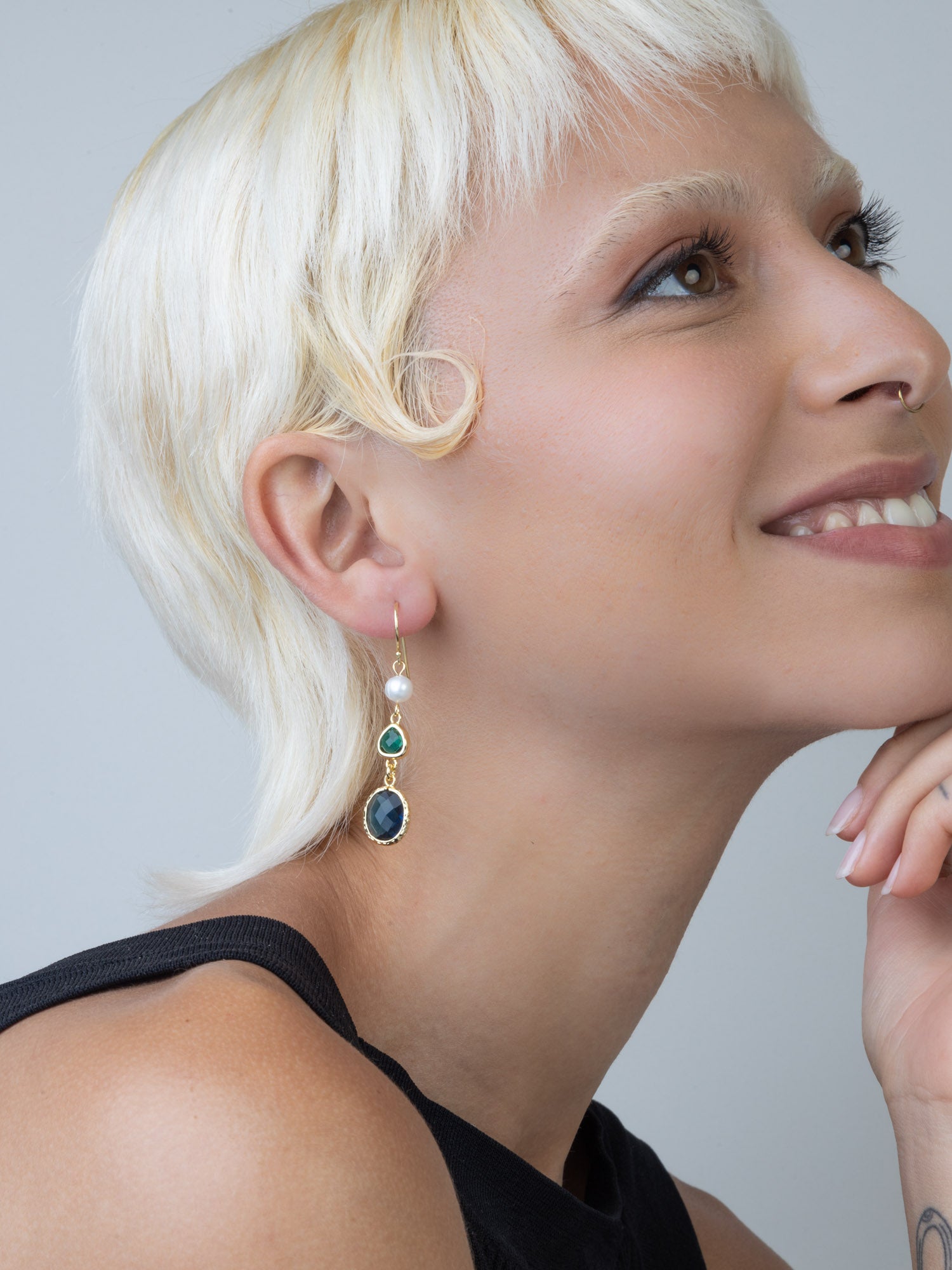 Pendentes banhados a ouro com pérola e vidro cristal colorido