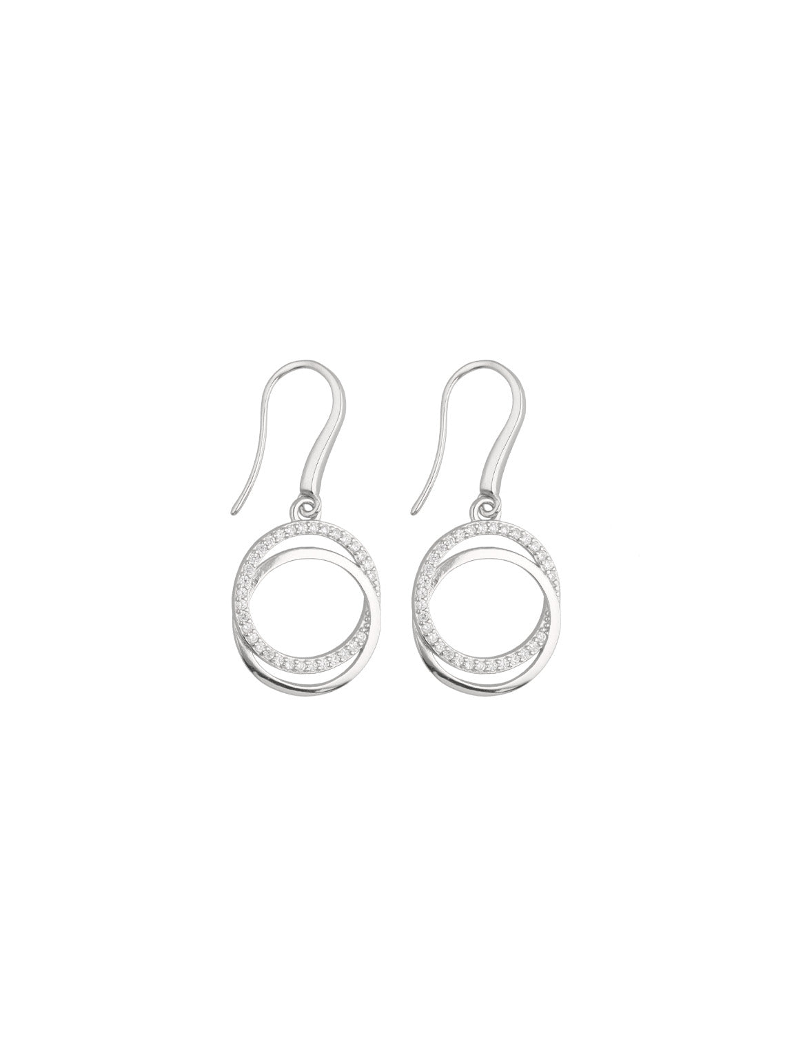 Pendentes, Prata de lei 925, Zircónia de cultivo, Claro, Círculo, Feito à mão,, Prateado, comprimento do brinco: 3.3 cm, largura do brinco: 1.3 cm, 2.80 gramas.