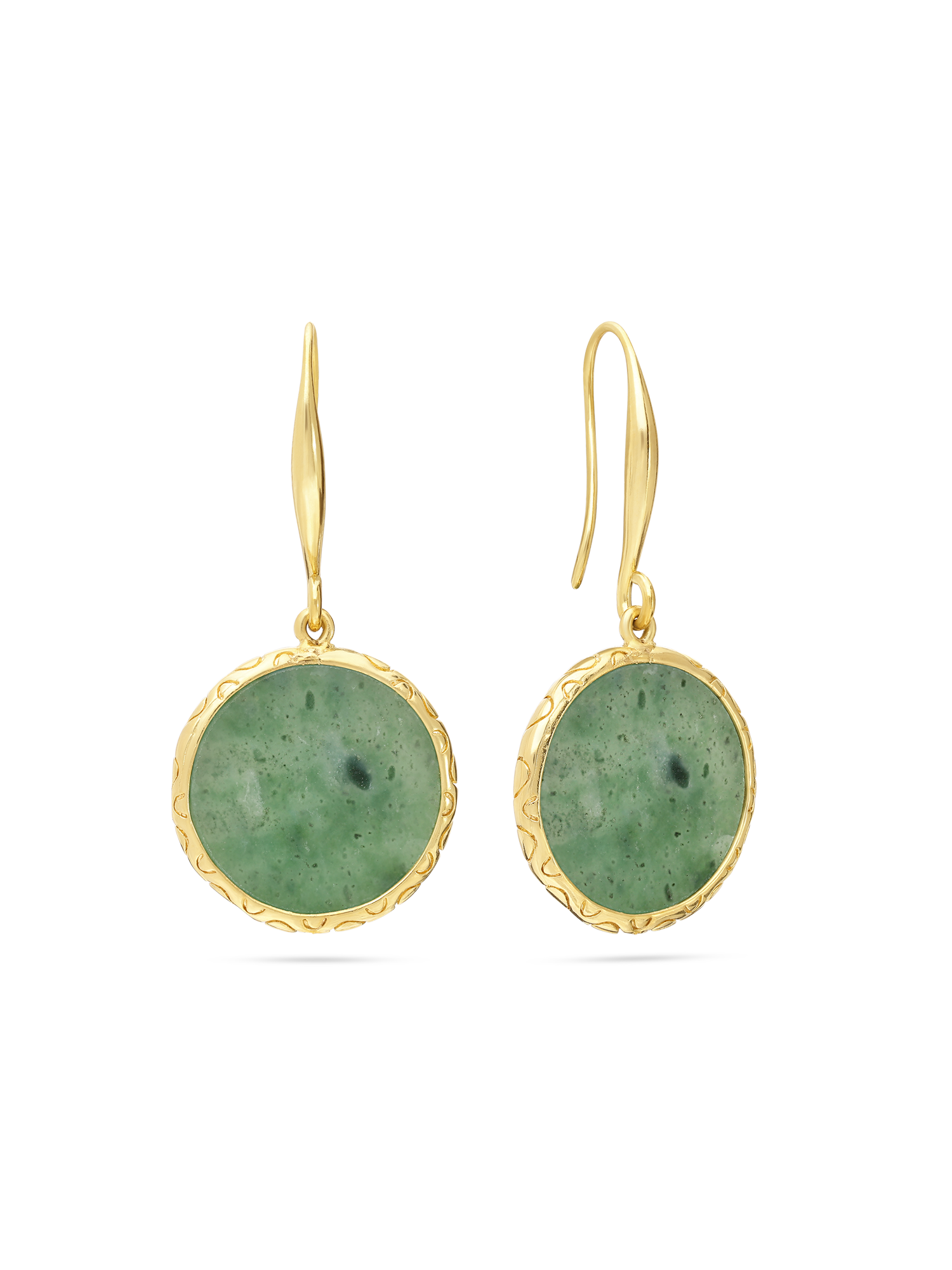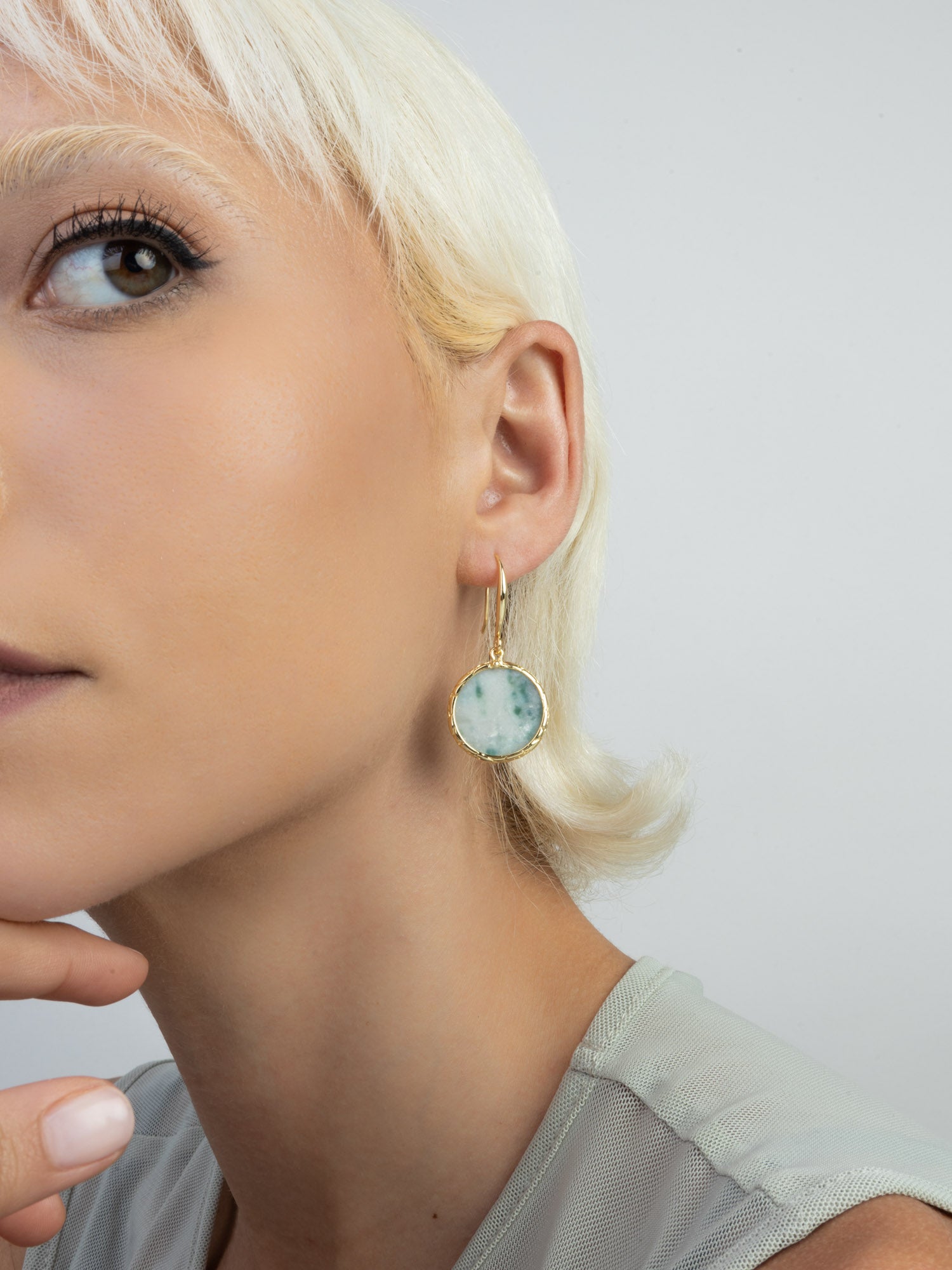 Pendentes, Banhado a Ouro, Ágata de cultivo, Verde, Círculo, Feito à mão,, Dourado, comprimento do brinco: 2.0 cm, largura do brinco: 2.0 cm, 4.60 gramas.