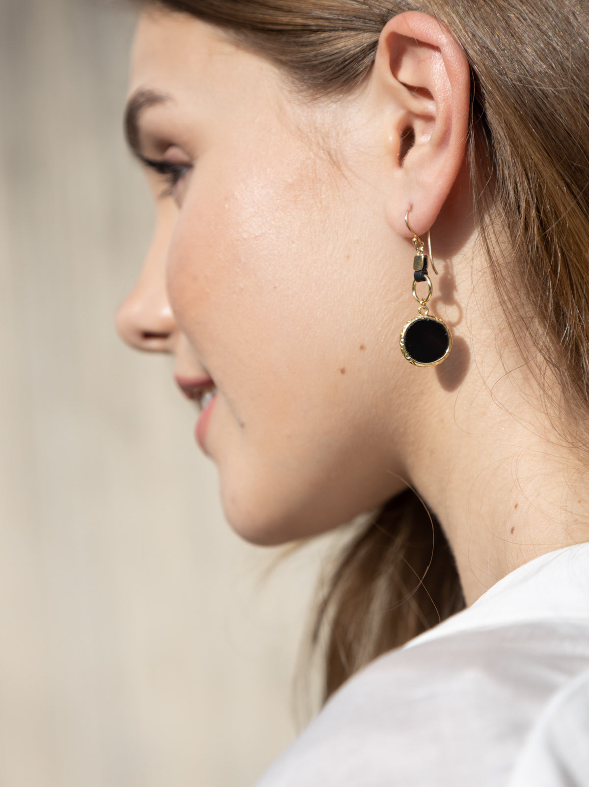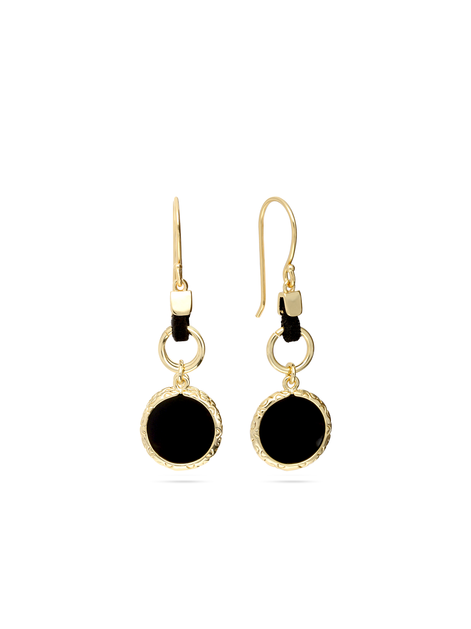 Pendentes banhados a ouro com ágata preta