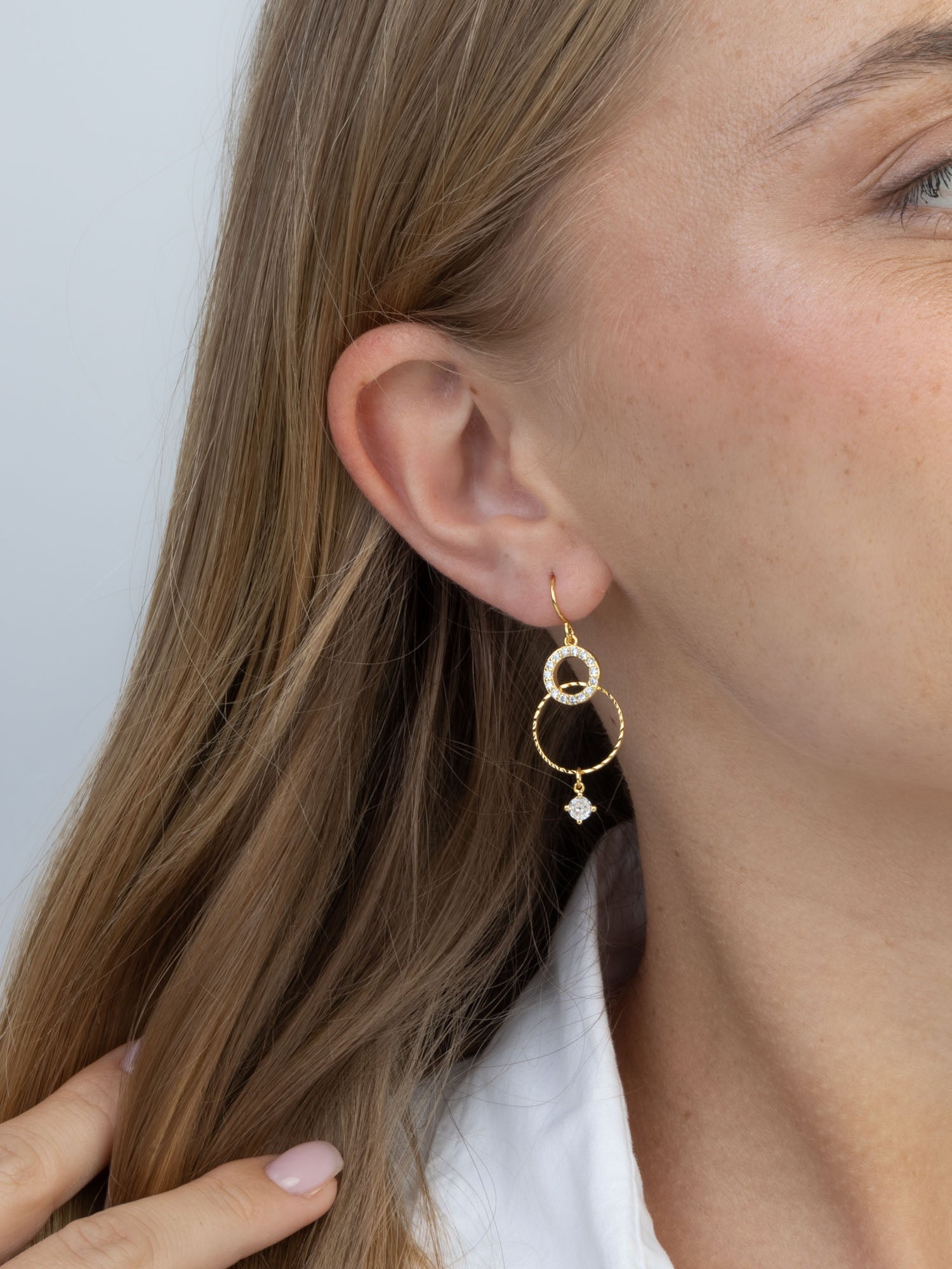 Pendentes, Banhado a Ouro, Vidro cristal, Claro, Círculo, Feito à mão,, Dourado, comprimento do brinco: 4.1 cm, largura do brinco: 1.3 cm, 1.90 gramas.