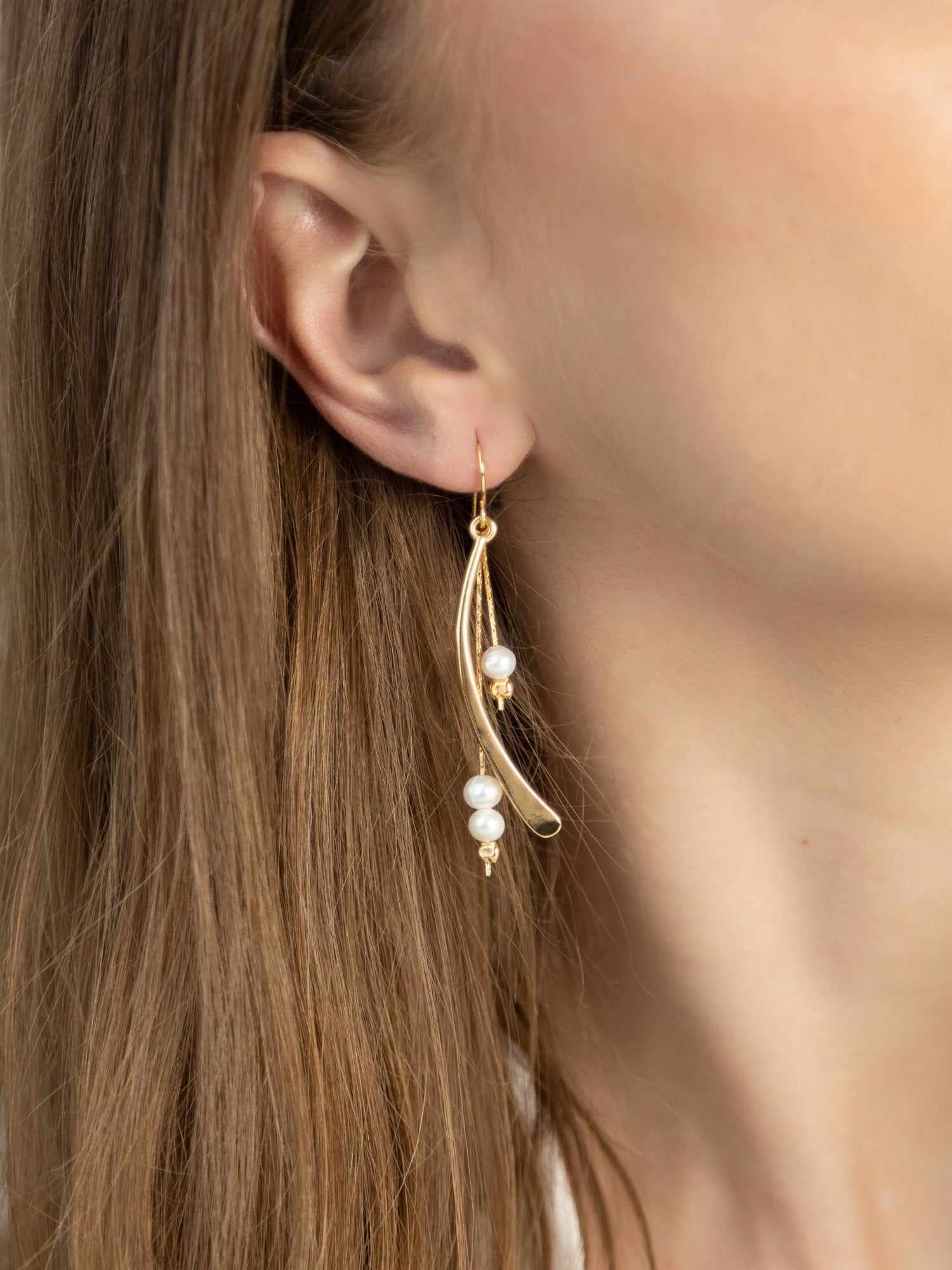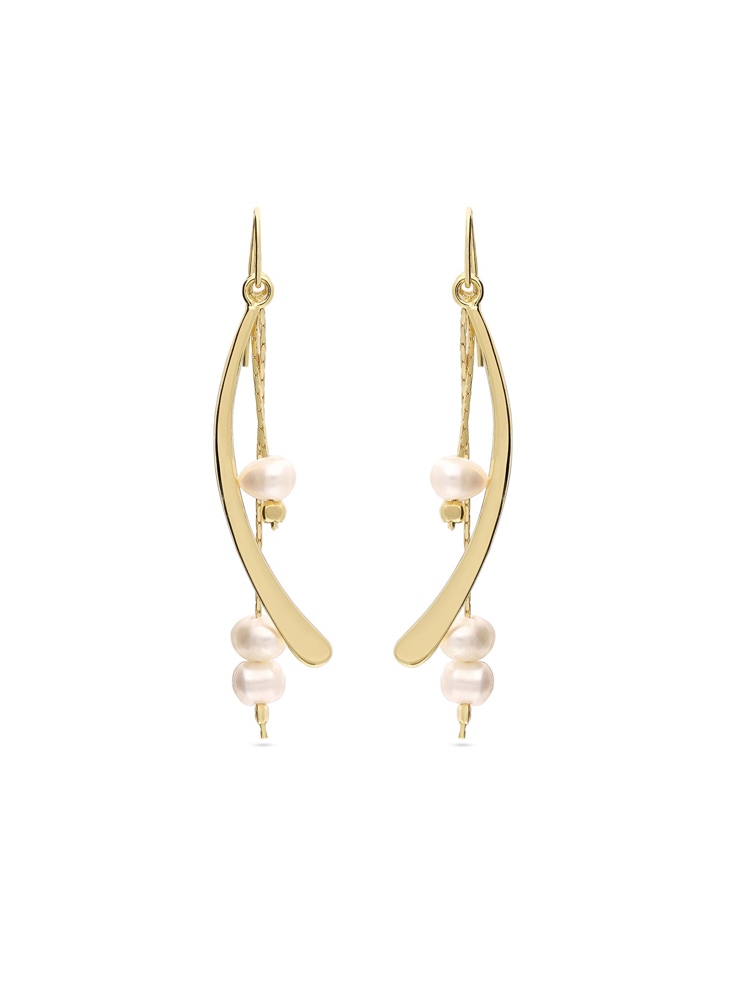 Pendentes, Banhado a Ouro, Pérola cultivada, Branco, Variedade de formas,, Dourado, comprimento do brinco: 6.2 cm, largura do brinco: 0.4 cm, 4.90 gramas.