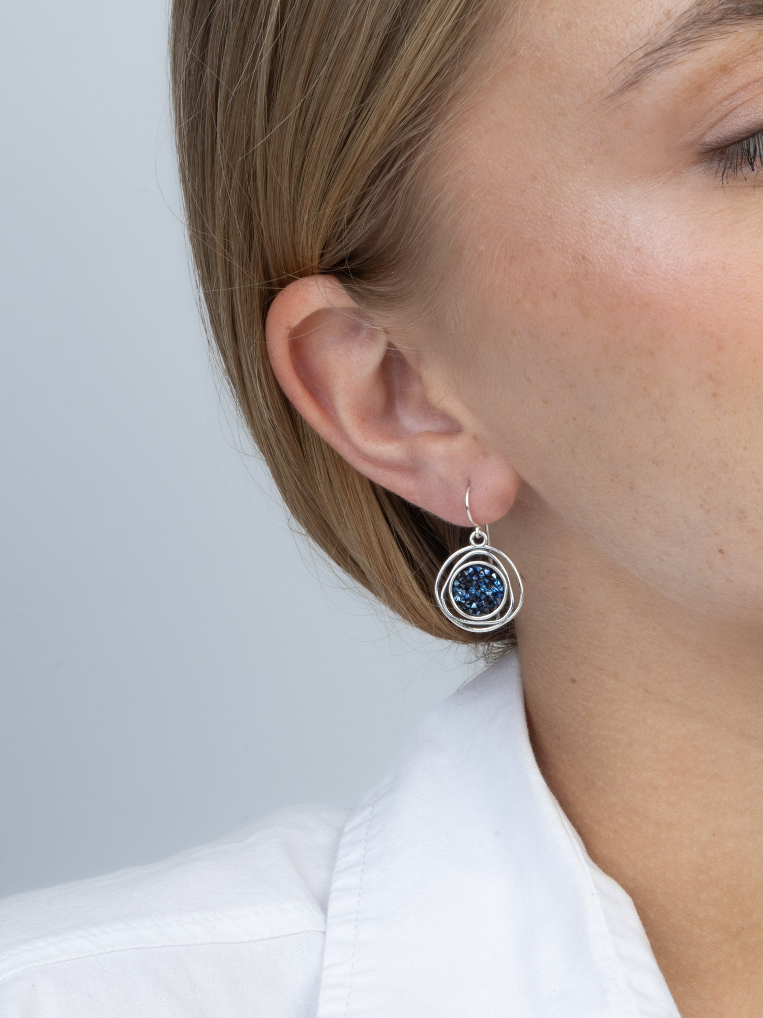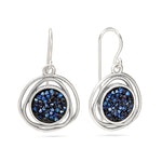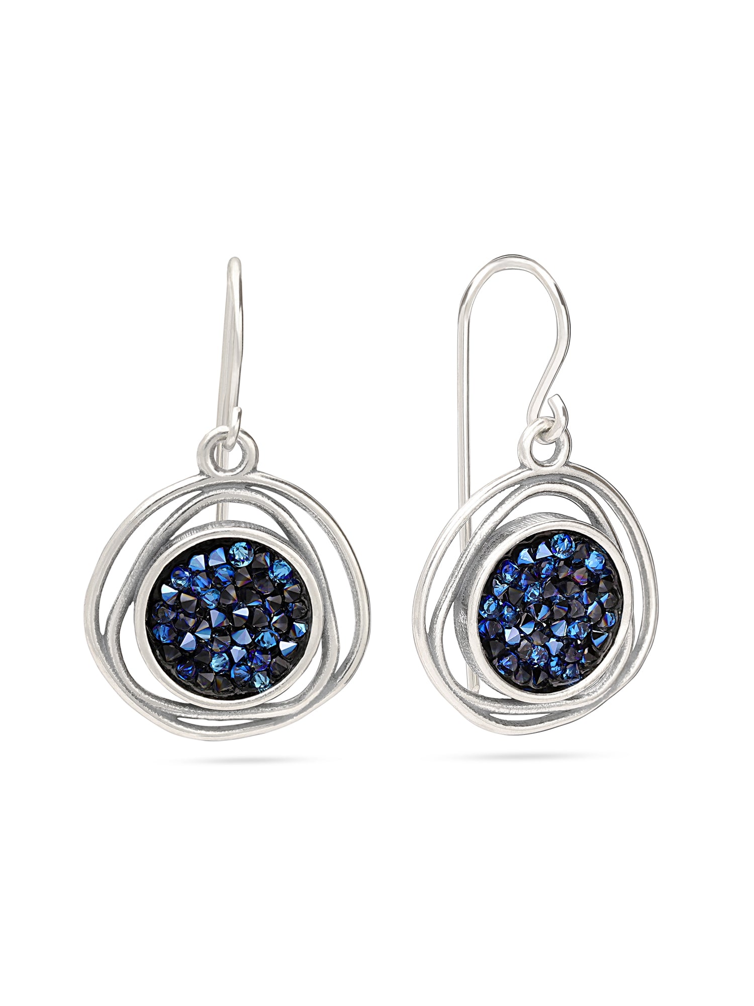 Pendentes, Prata, Cristal Swarovski de cultivo, Azul, Círculo, Feito à mão,, Prateado, comprimento do brinco: 1.5 cm, largura do brinco: 2.0 cm, 3.90 gramas.