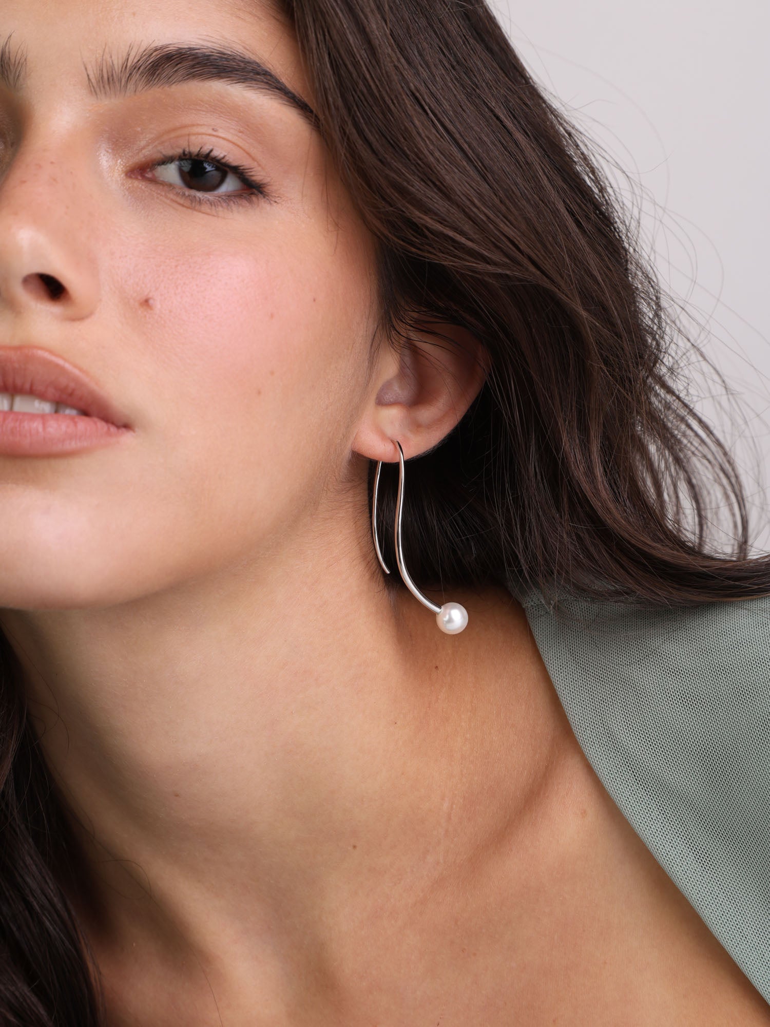Pendentes, Prata de lei 925, Swarovski de cultivo, Branco, Forma não específica, Prateado, comprimento do brinco: 5.5 cm, largura do brinco: 0.8 cm, 5.15 gramas.