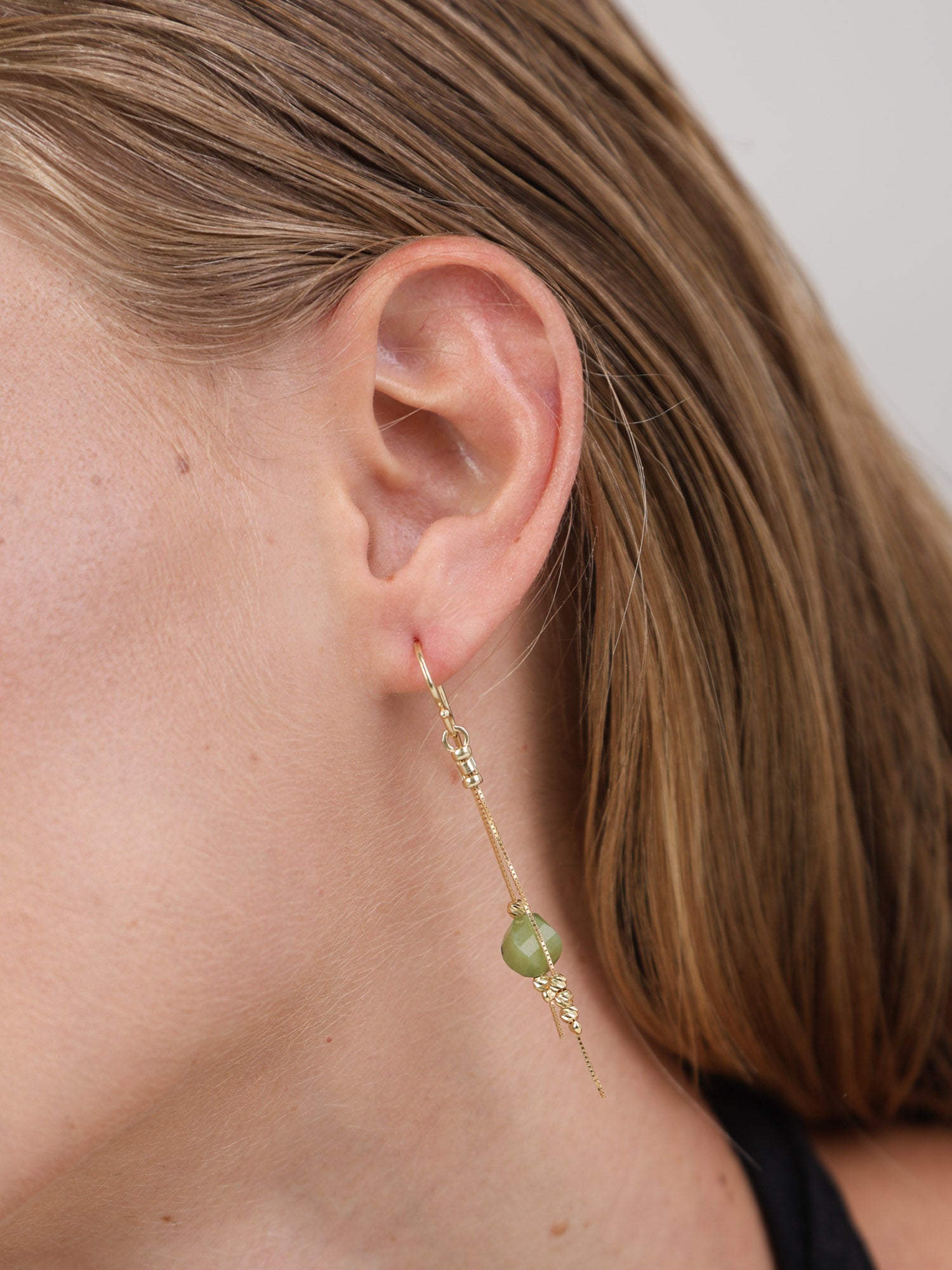 Pendentes, Banhado a Ouro, Ágata de cultivo, Verde, Círculo, Feito à mão, Dourado, comprimento do brinco: 5.0 cm, largura do brinco: 2.0 cm, 2.70 gramas.