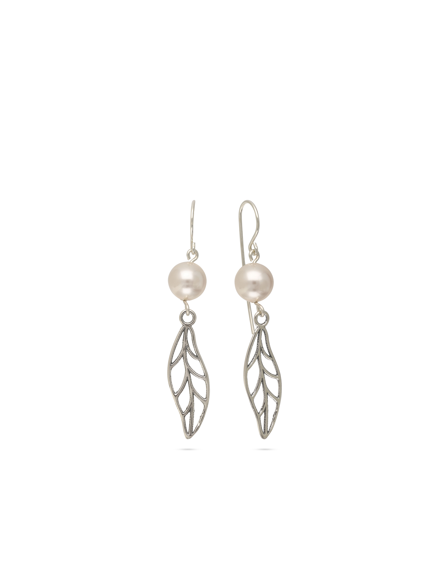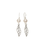 Pendentes, Prata, Swarovski de cultivo, Branco, Folha, Círculo, Feito à mão, Prateado, comprimento do brinco: 3.5 cm, largura do brinco: 1.0 cm, 3.10 gramas.
