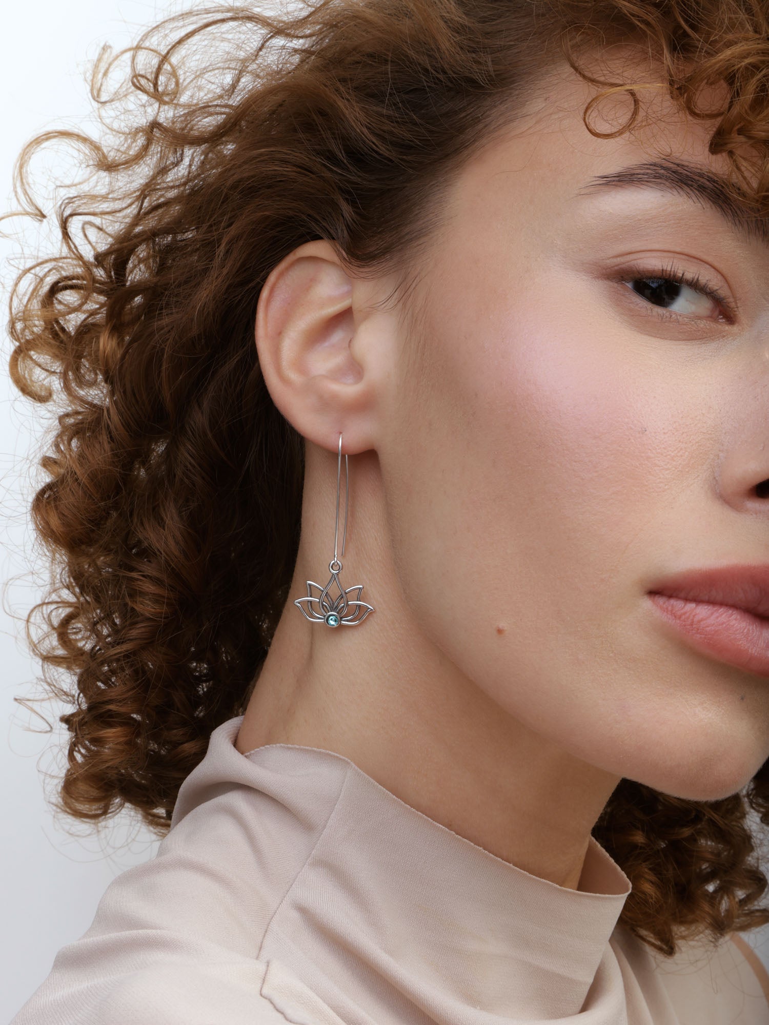 Pendentes, Prata, Cristal Swarovski de cultivo, Azul céu, Flor, Feito à mão, Prateado, comprimento do brinco: 4.0 cm, largura do brinco: 1.5 cm, 2.70 gramas.