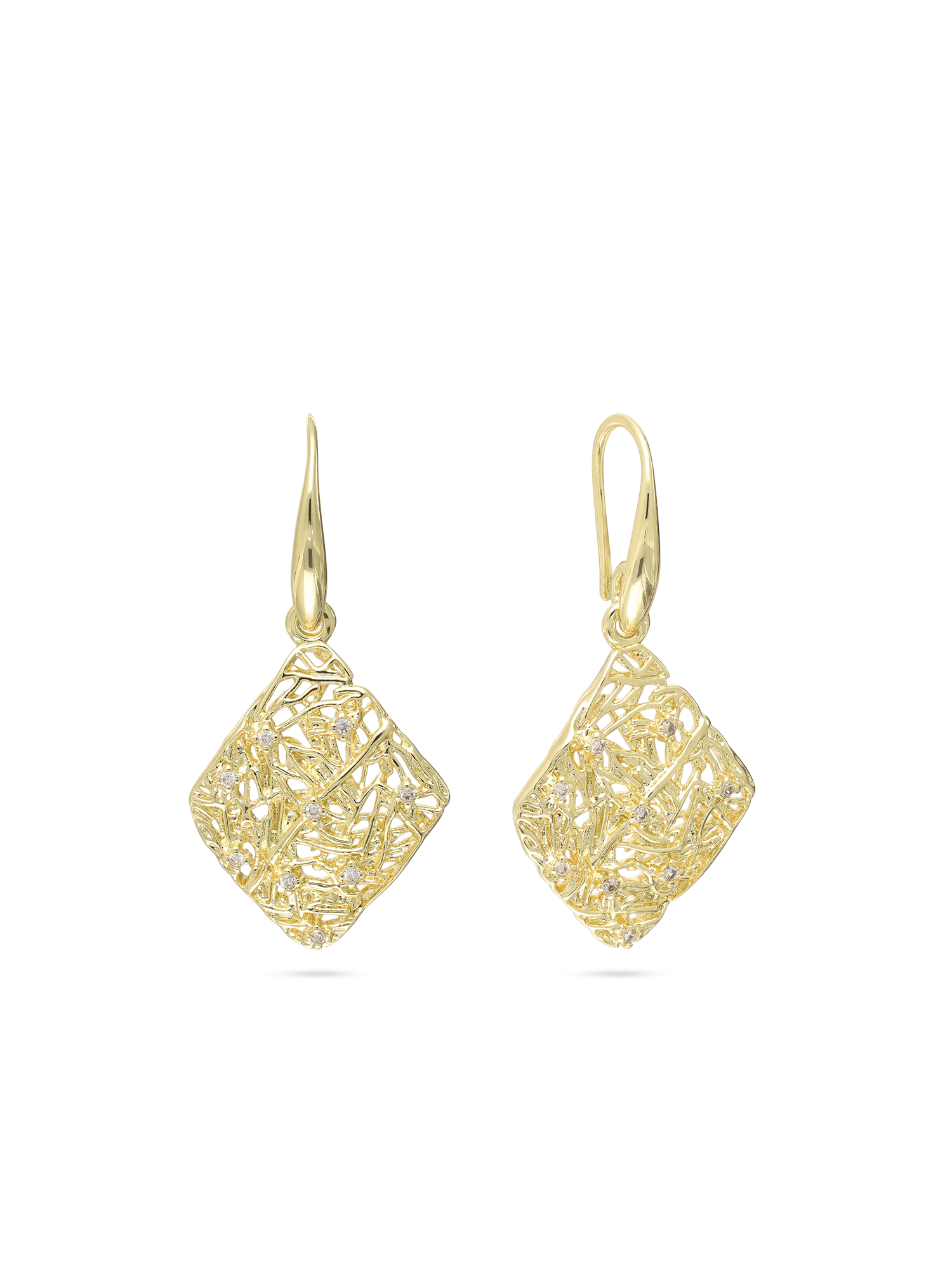 Pendentes, Banhado a Ouro, Zircónia de cultivo, Claro, Quadrado, Feito à mão, Dourado, comprimento do brinco: 22.0 mm, largura do brinco: 18.1 mm, 4.13 gramas.