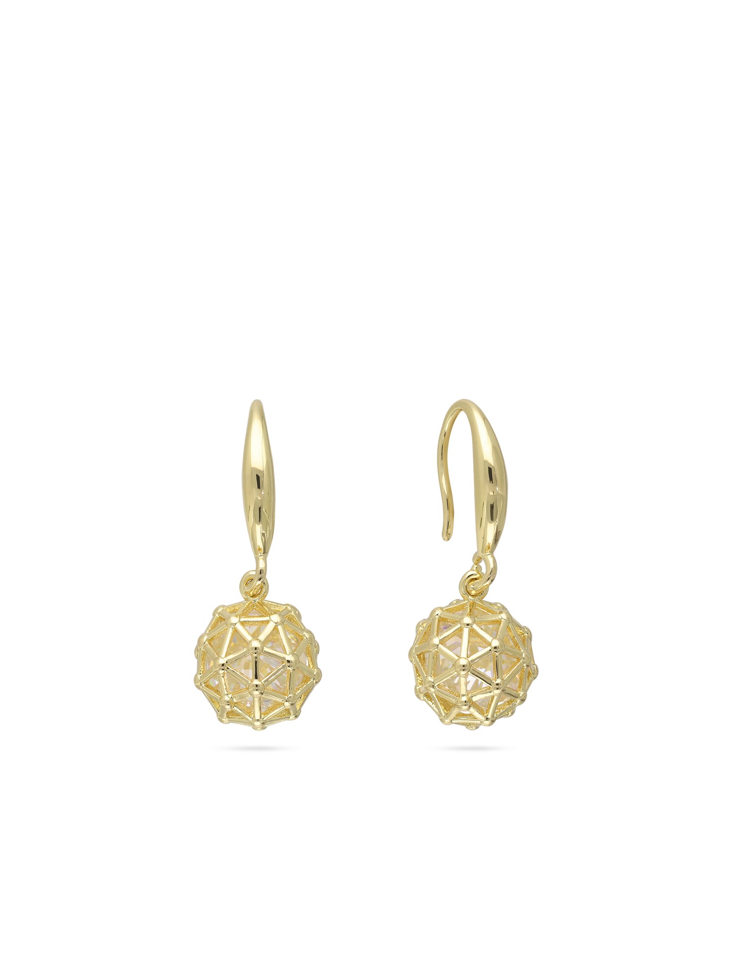 Pendentes, Banhado a Ouro, Zircónia de cultivo, Claro, Círculo, Feito à mão, Dourado, comprimento do brinco: 9.8 mm, largura do brinco: 9.6 mm, 3.74 gramas.