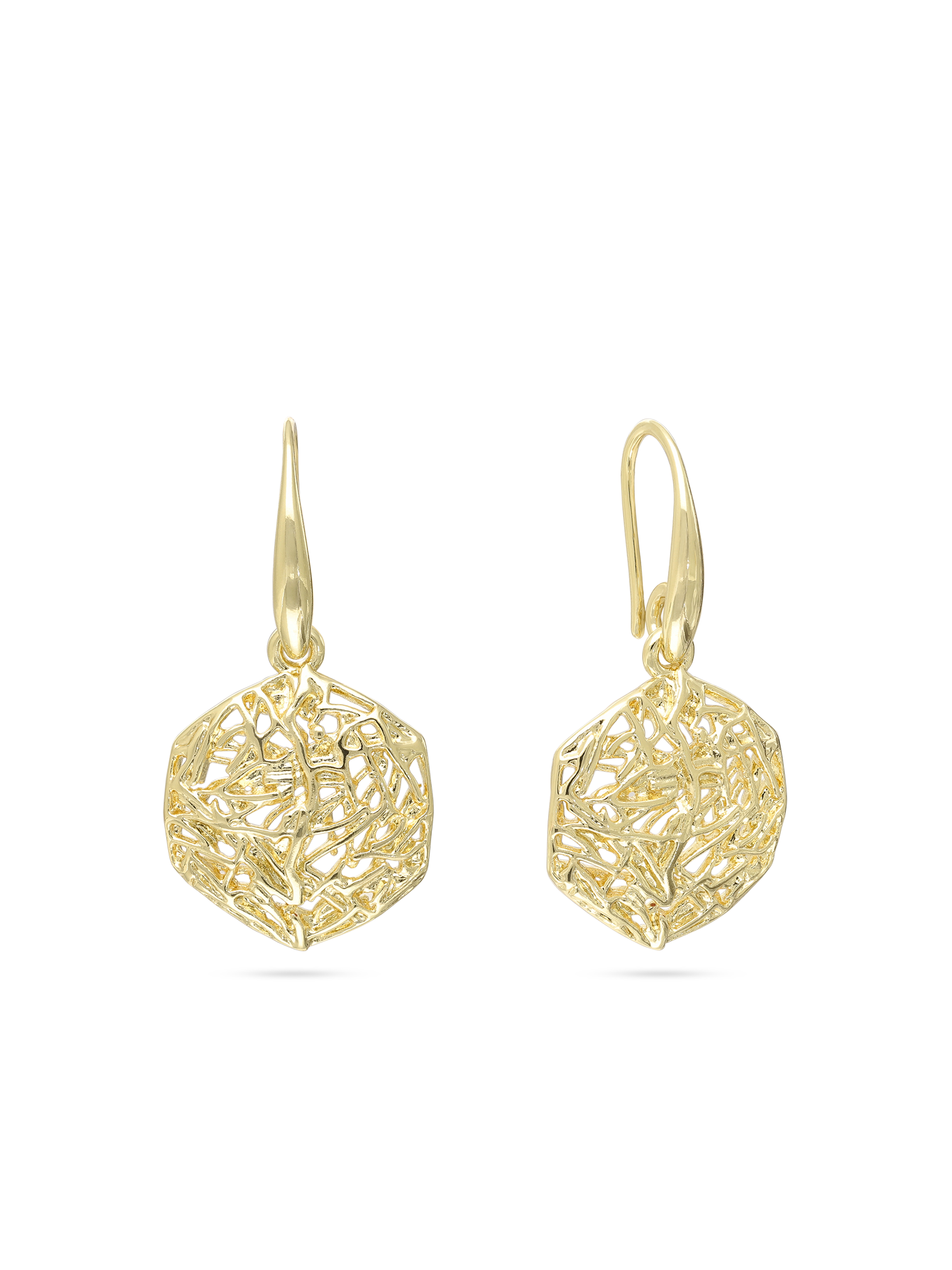 Pendentes, Banhado a Ouro, Nenhuma pedra, Sem cor, Hexágono, Dourado, comprimento do brinco: 17.8 mm, largura do brinco: 16.9 mm, 3.72 gramas.