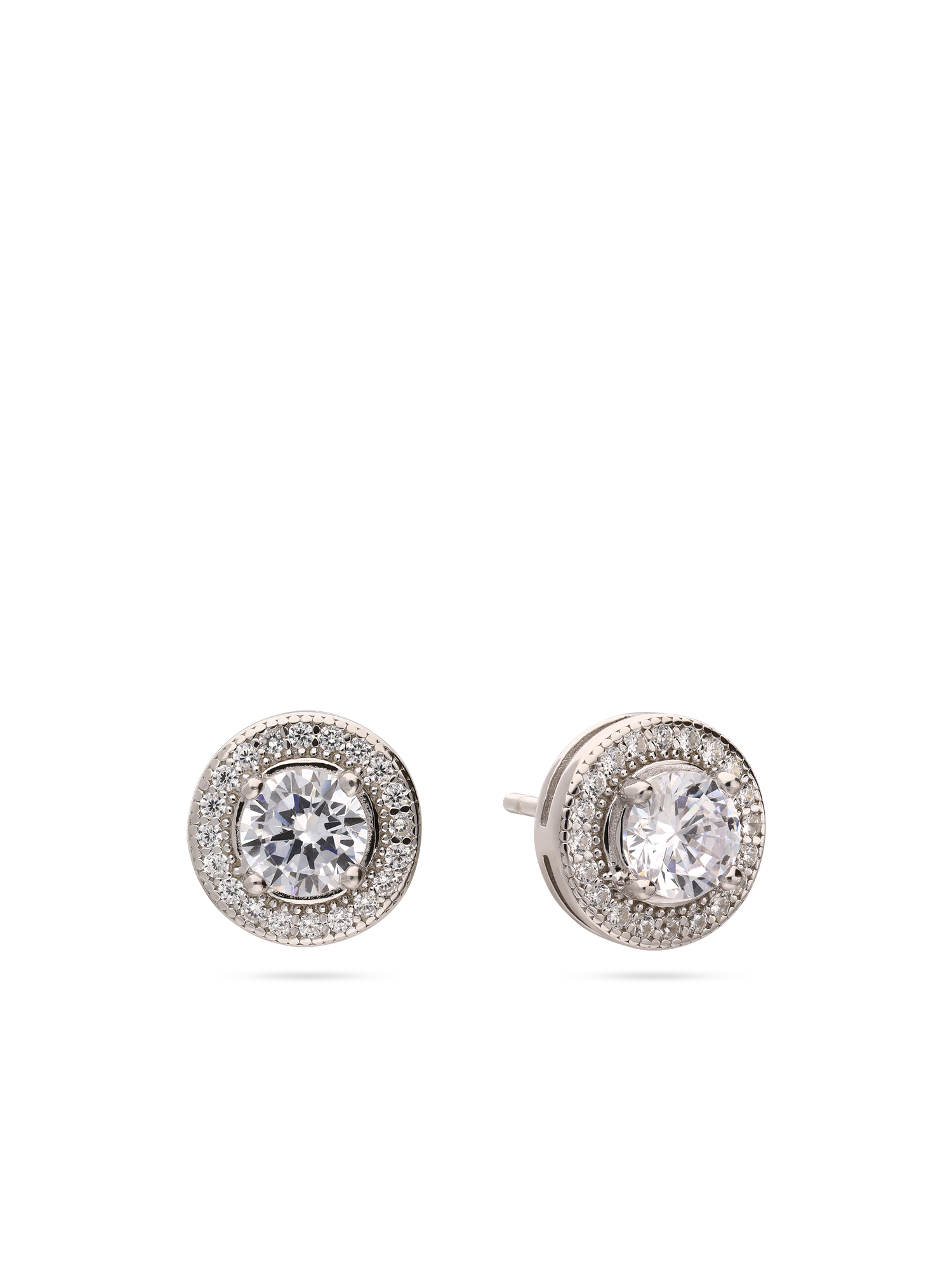 Brincos de placa, Prata de lei 925, Zircónia de cultivo, Claro, Círculo, Feito à mão,, Prateado, comprimento do brinco: 0.7 cm, largura do brinco: 0.7 cm, 2.50 gramas.