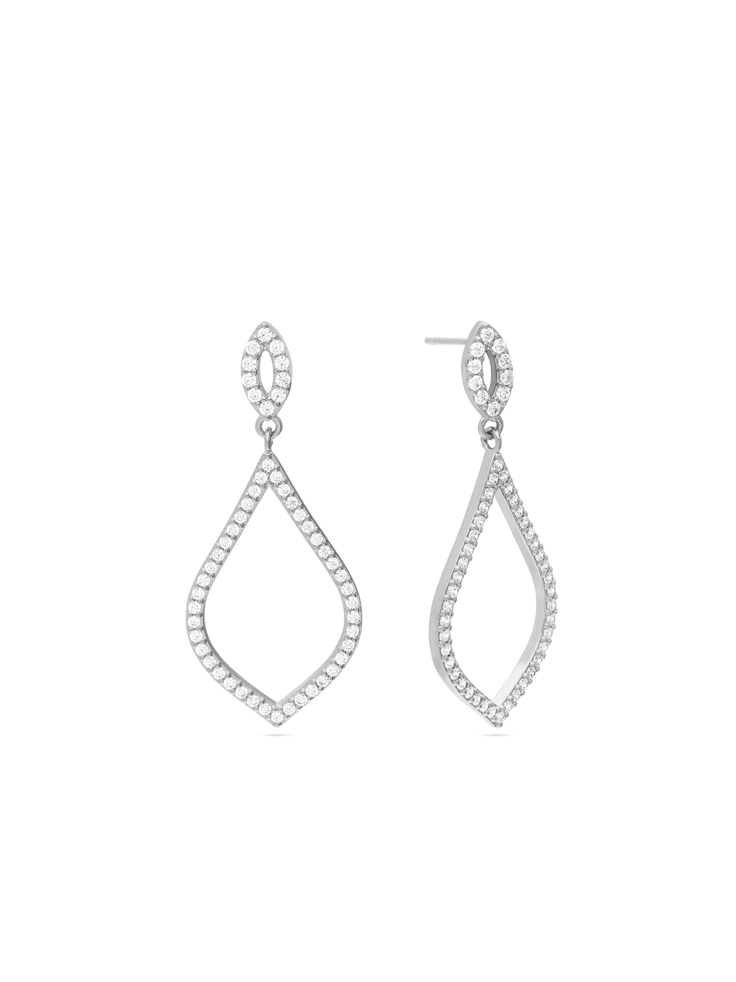 Pendentes, Prata de lei 925, Zircónia de cultivo, Claro, Lágrima, Feito à mão,, Prateado, comprimento do brinco: 4.0 cm, largura do brinco: 1.8 cm, 4.69 gramas.