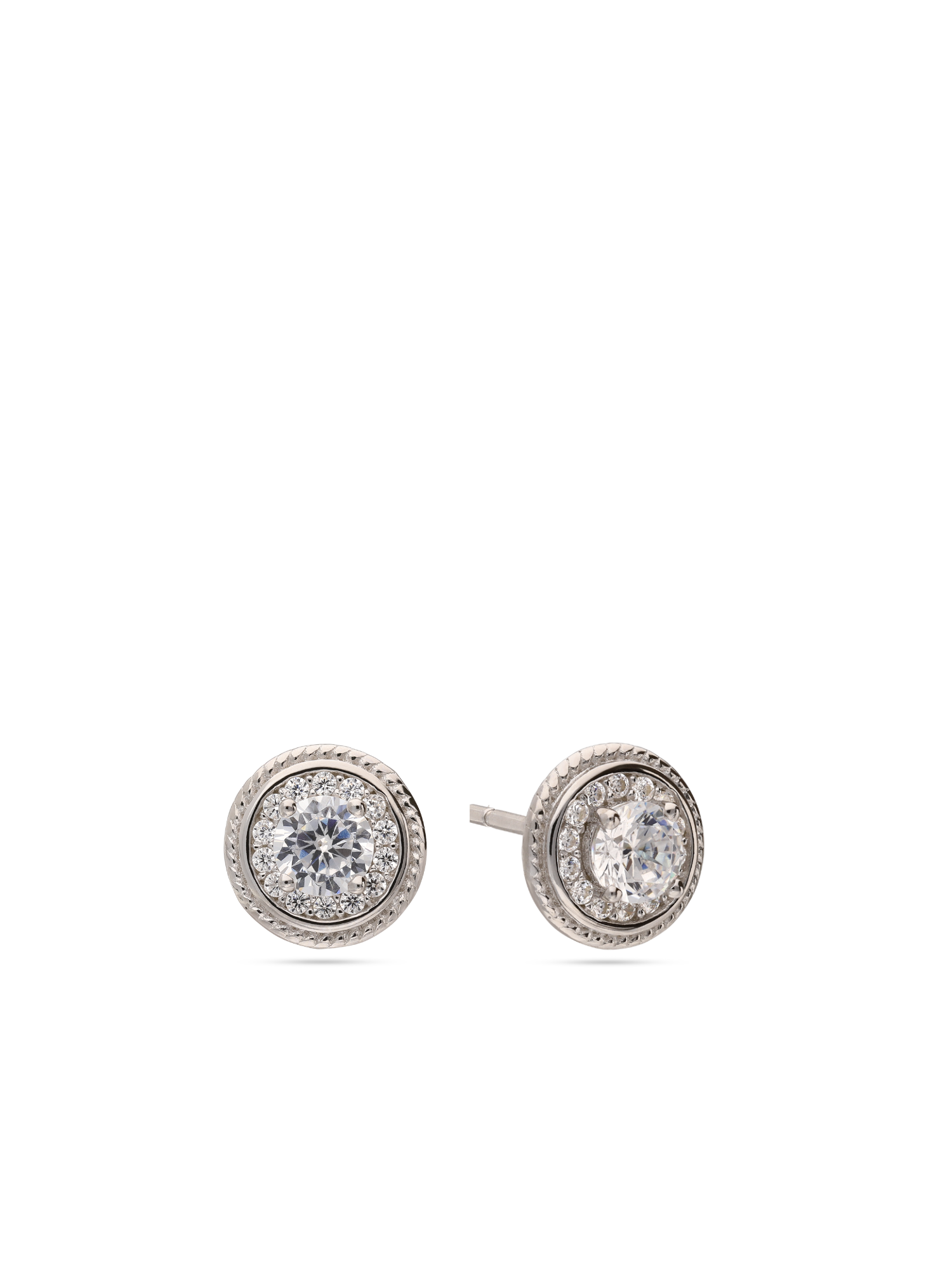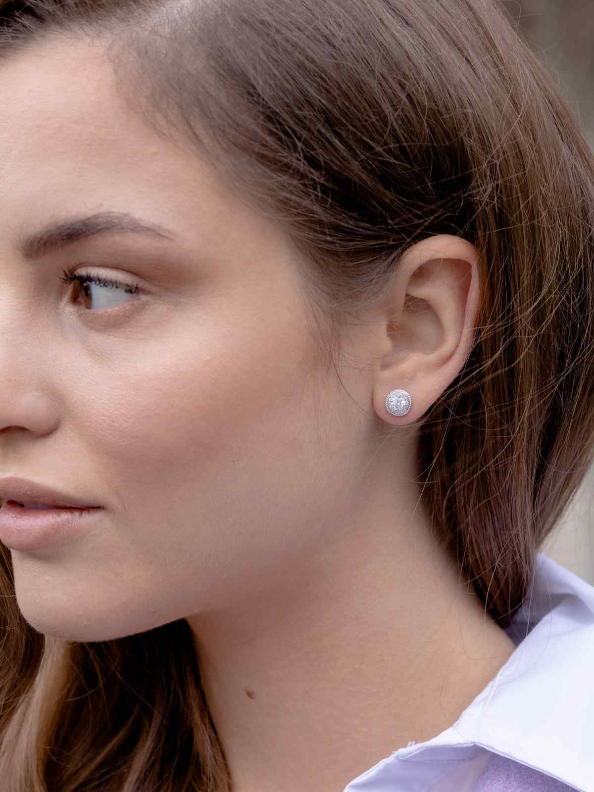 Brincos de placa, Prata, Zircónia de cultivo, Claro, Círculo, Feito à mão,, Prateado, comprimento do brinco: 0.8 cm, largura do brinco: 0.8 cm, 1.72 gramas.