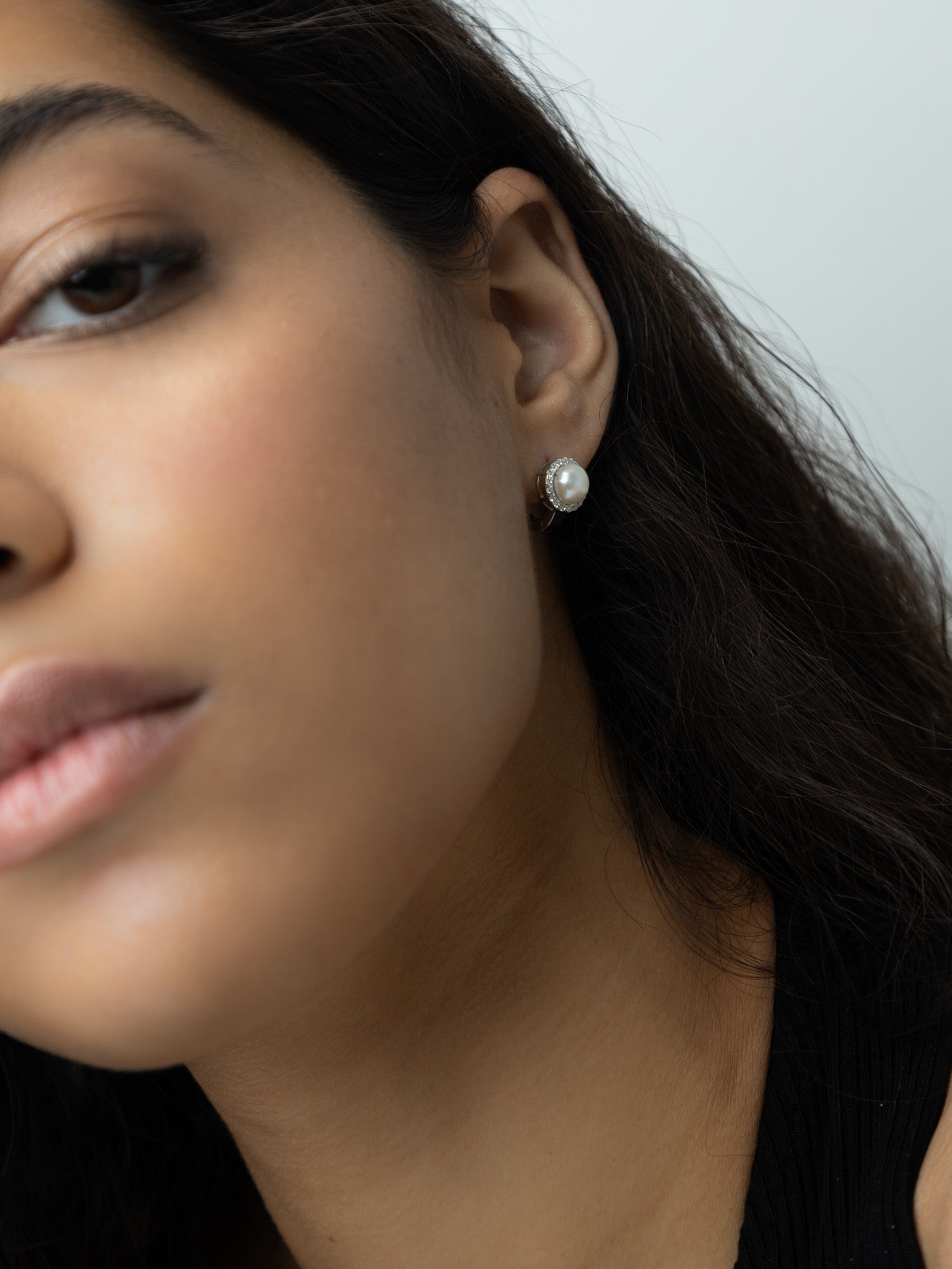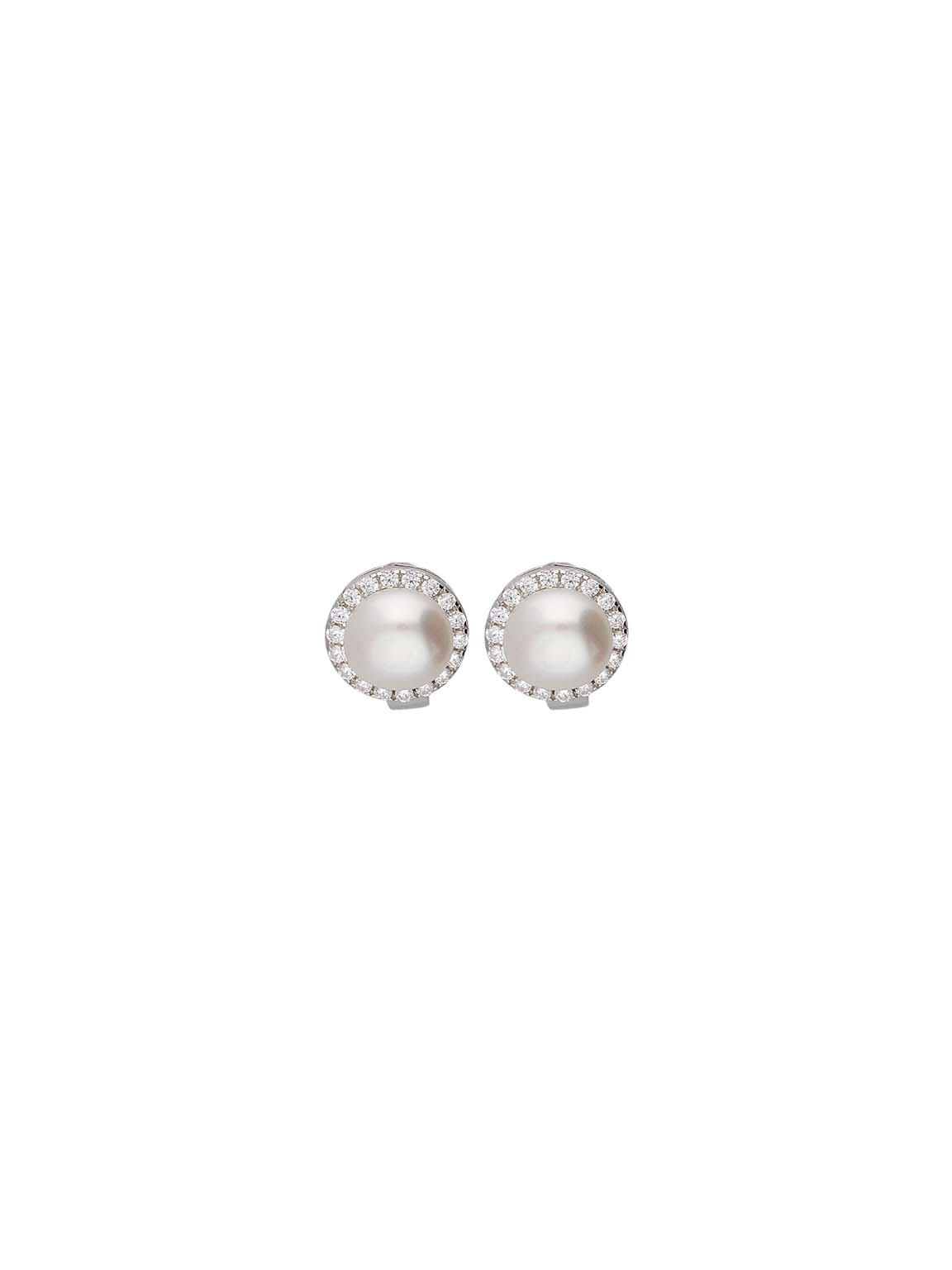 Brincos de placa, Prata de lei 925, Zircónia de cultivo, Pérola cultivada, Branco, Claro, Círculo, Feito à mão,, Prateado, 3.55 gramas.