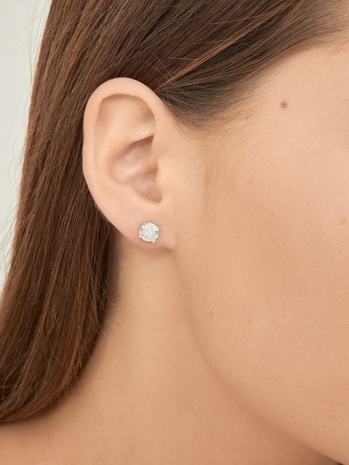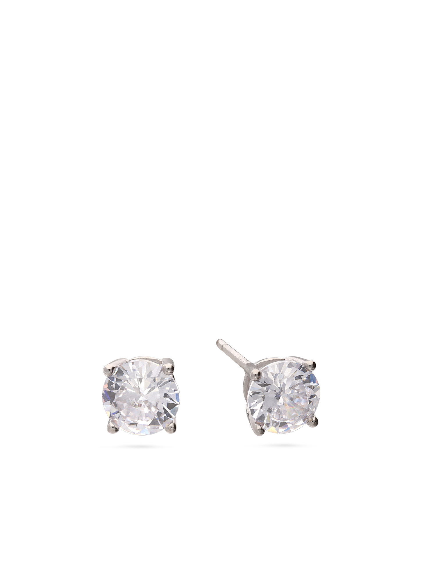 Brincos de placa, Prata, Zircónia de cultivo, Claro, Círculo, Feito à mão,, Prateado, 1.00 grama.