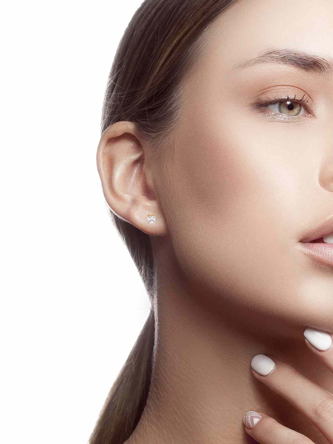 Brincos de placa, Banhado a Ouro, Zircónia de cultivo, Claro, Quadrado, Feito à mão,, Dourado, comprimento do brinco: 4.0 mm, 1.50 gramas.