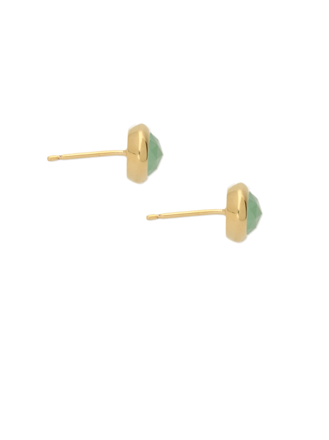 Brincos de placa, Banhado a Ouro, Calcedónia de cultivo, Azul céu, Círculo,, Dourado, comprimento do brinco: 0.8 cm, largura do brinco: 0.8 cm, 1.70 gramas.