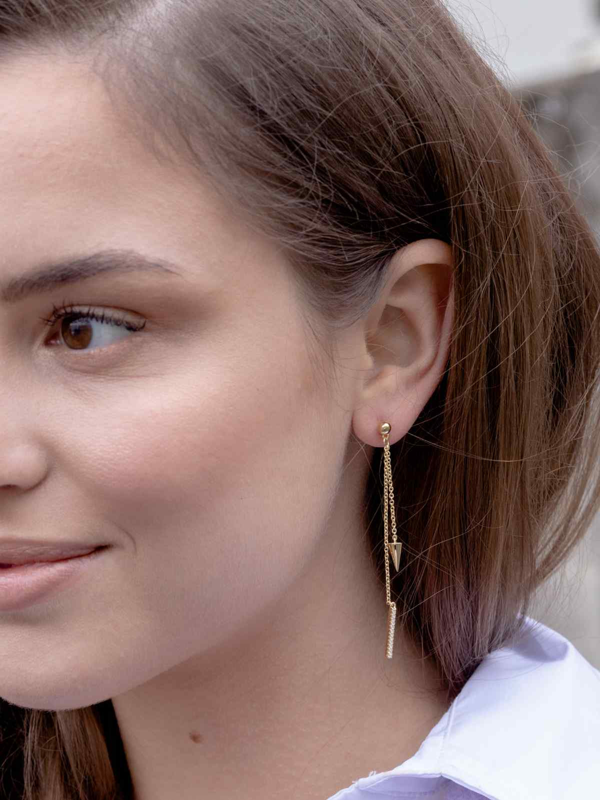 Pendentes, Banhado a Ouro, Zircónia de cultivo, Claro, Variedade de formas, Feito à mão,, Dourado, comprimento do brinco: 7.0 cm, largura do brinco: 0.4 cm, 2.81 gramas.