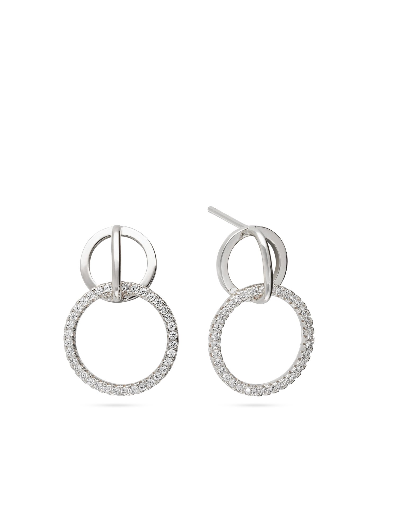 Pendentes, Prata de lei 925, Zircónia de cultivo, Claro, Círculo, Feito à mão,, Prateado, comprimento do brinco: 2.0 cm, largura do brinco: 1.5 cm, 2.76 gramas.