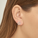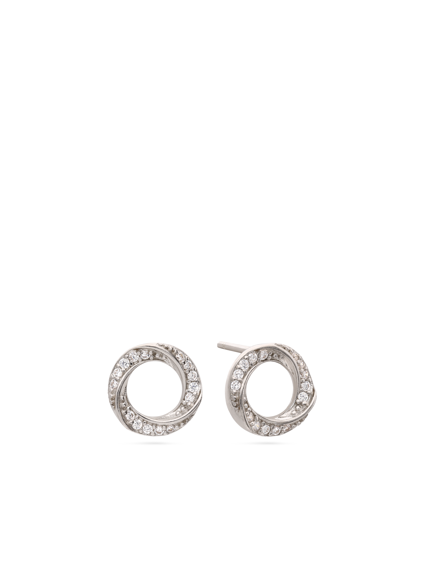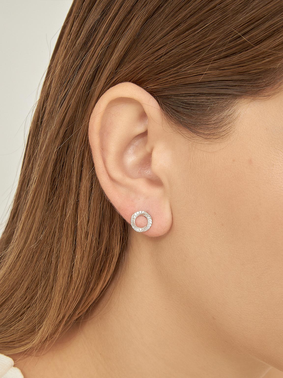 Brincos de placa, Prata de lei 925, Zircónia de cultivo, Claro, Círculo, Feito à mão,, Prateado, comprimento do brinco: 0.9 cm, largura do brinco: 0.9 cm, 1.33 gramas.