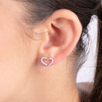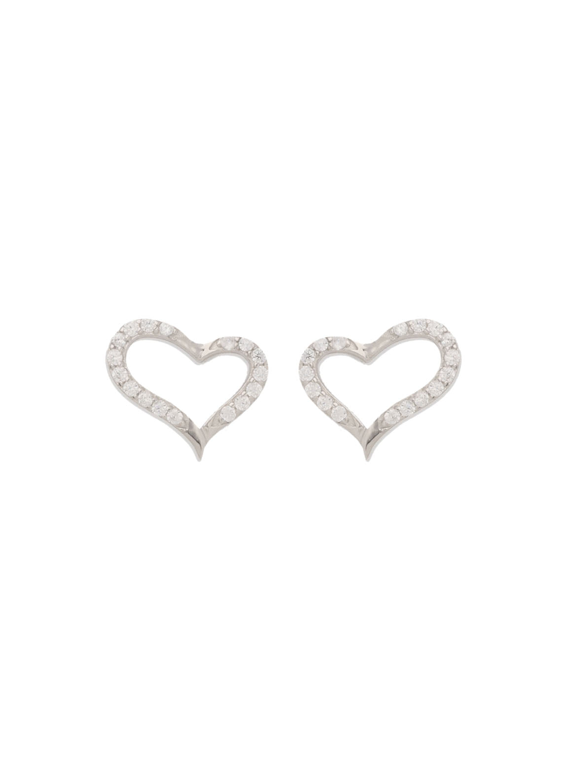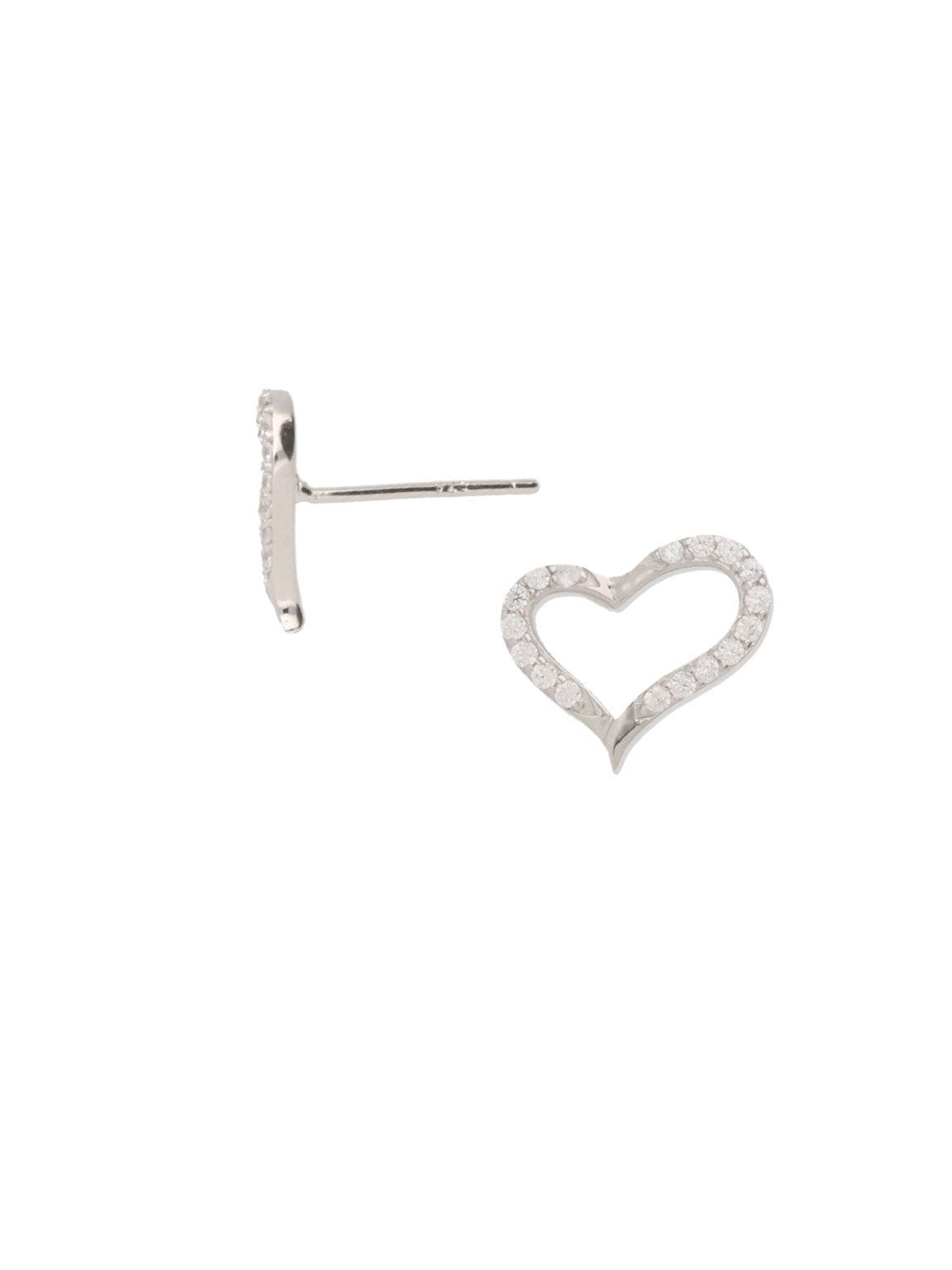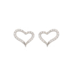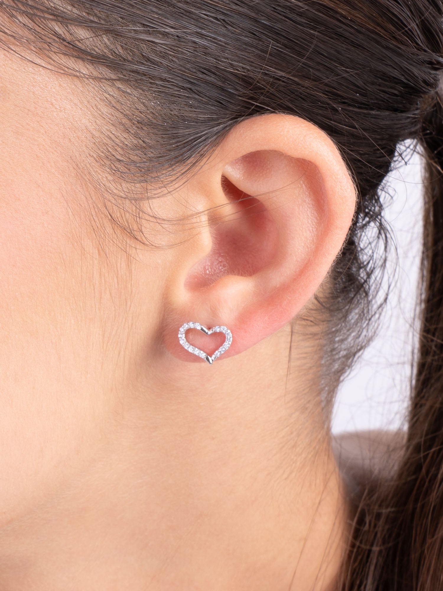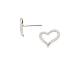 Brincos de placa, Prata de lei 925, Zircónia de cultivo, Claro, Coração, Feito à mão,, Prateado, comprimento do brinco: 1.0 cm, largura do brinco: 1.1 cm, 1.00 grama.