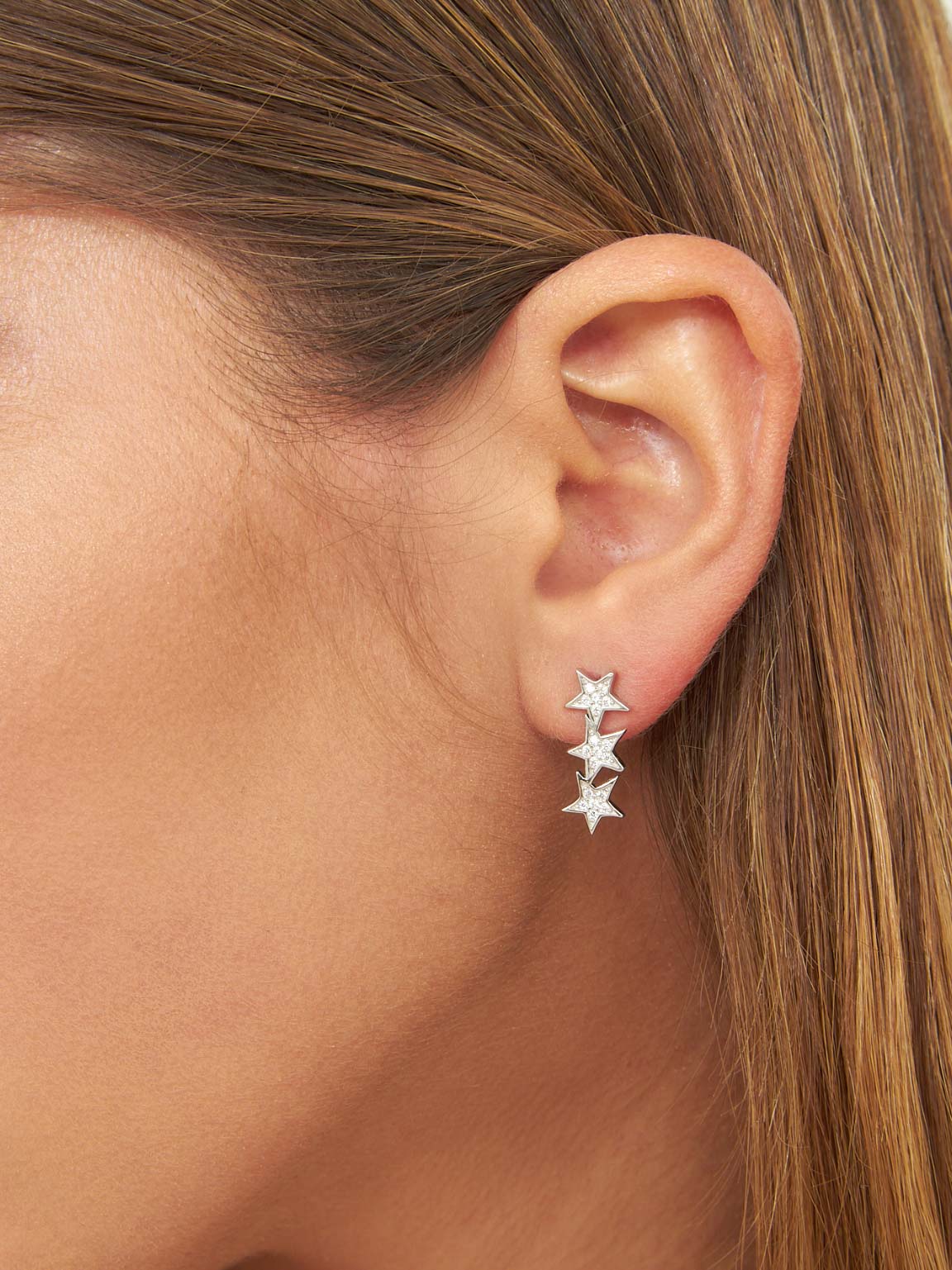 Pendentes, Prata de lei 925, Zircónia de cultivo, Claro, Estrela, Feito à mão,, Prateado, comprimento do brinco: 1.9 cm, largura do brinco: 0.8 cm, 2.00 gramas.