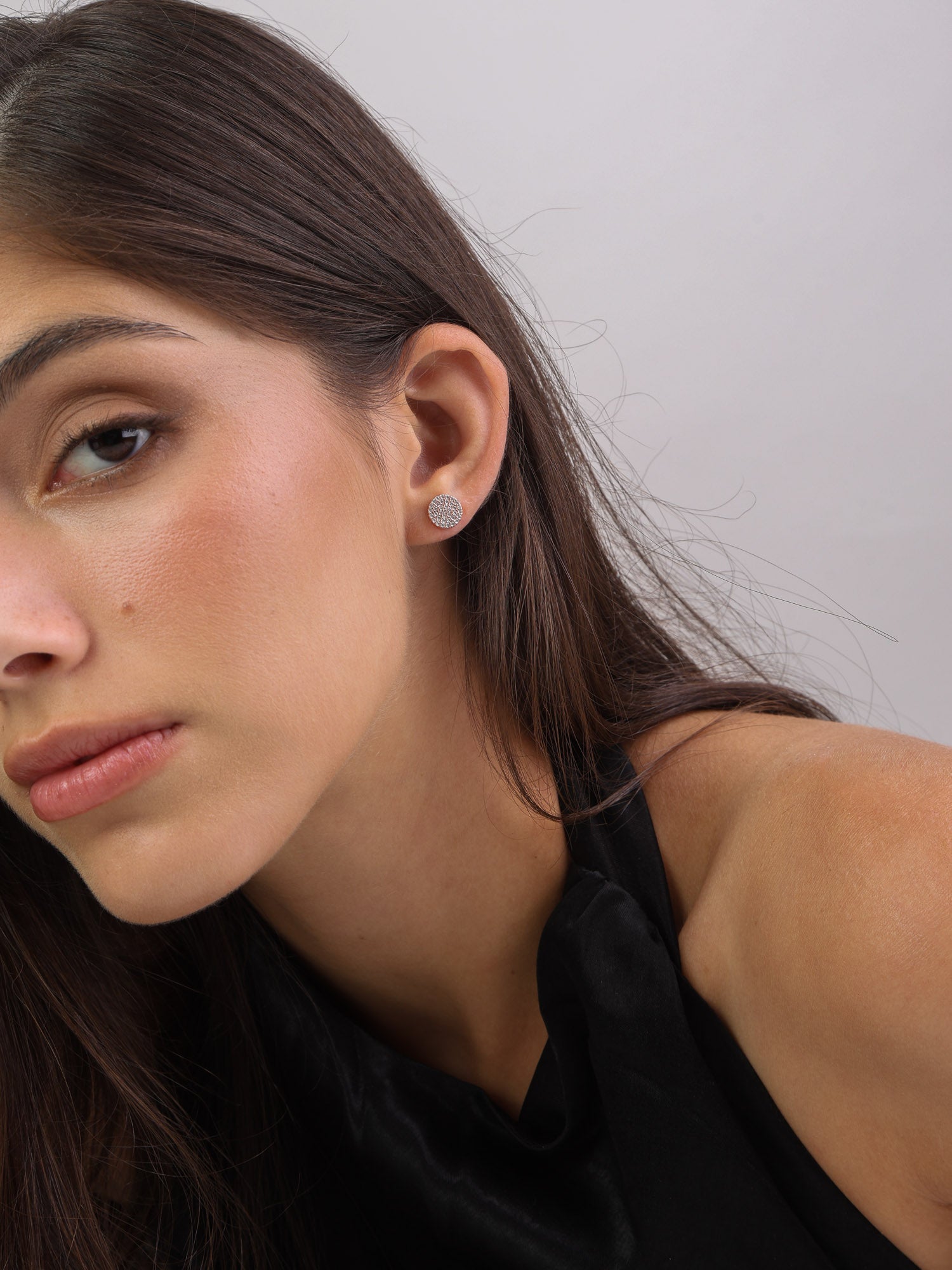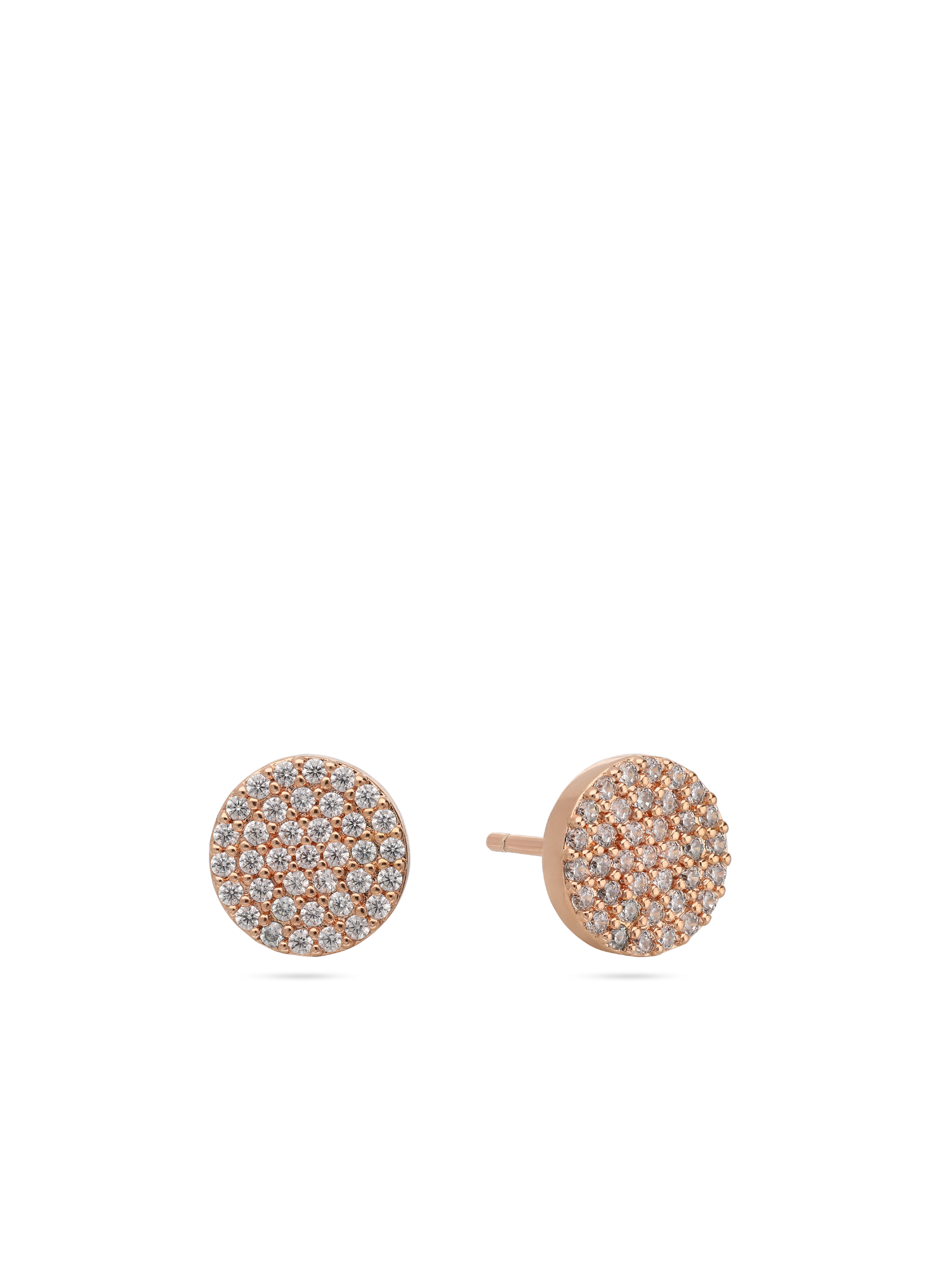 Brincos de placa, Banhado a ouro rosa, Zircónia de cultivo, Claro, Círculo, Feito à mão,, Ouro rosado, largura do brinco: 0.9 cm, comprimento do brinco: 0.9 cm, 1.92 gramas.