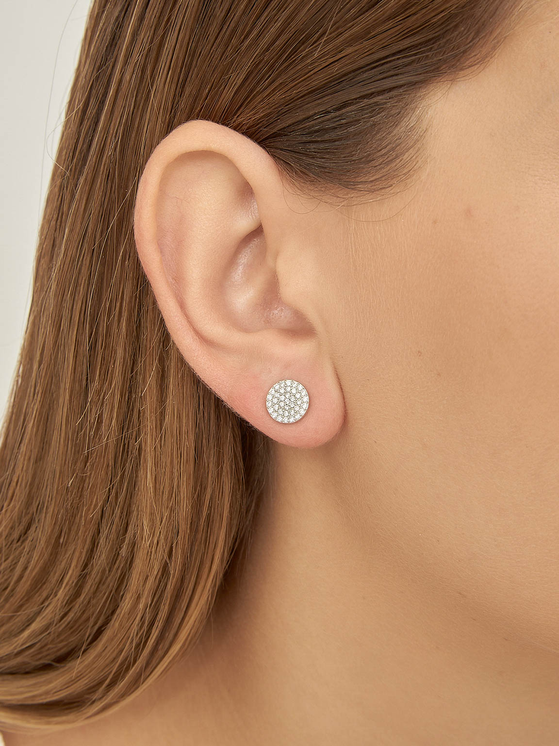 Brincos de placa, Prata de lei 925, Zircónia de cultivo, Claro, Círculo, Feito à mão,, Prateado, comprimento do brinco: 0.8 cm, largura do brinco: 0.8 cm, 2.11 gramas.