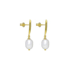 Pendentes, Banhado a Ouro, Pérola cultivada, Branco, Círculo,, Dourado, comprimento do brinco: 2.9 cm, largura do brinco: 0.7 cm, 2.40 gramas.