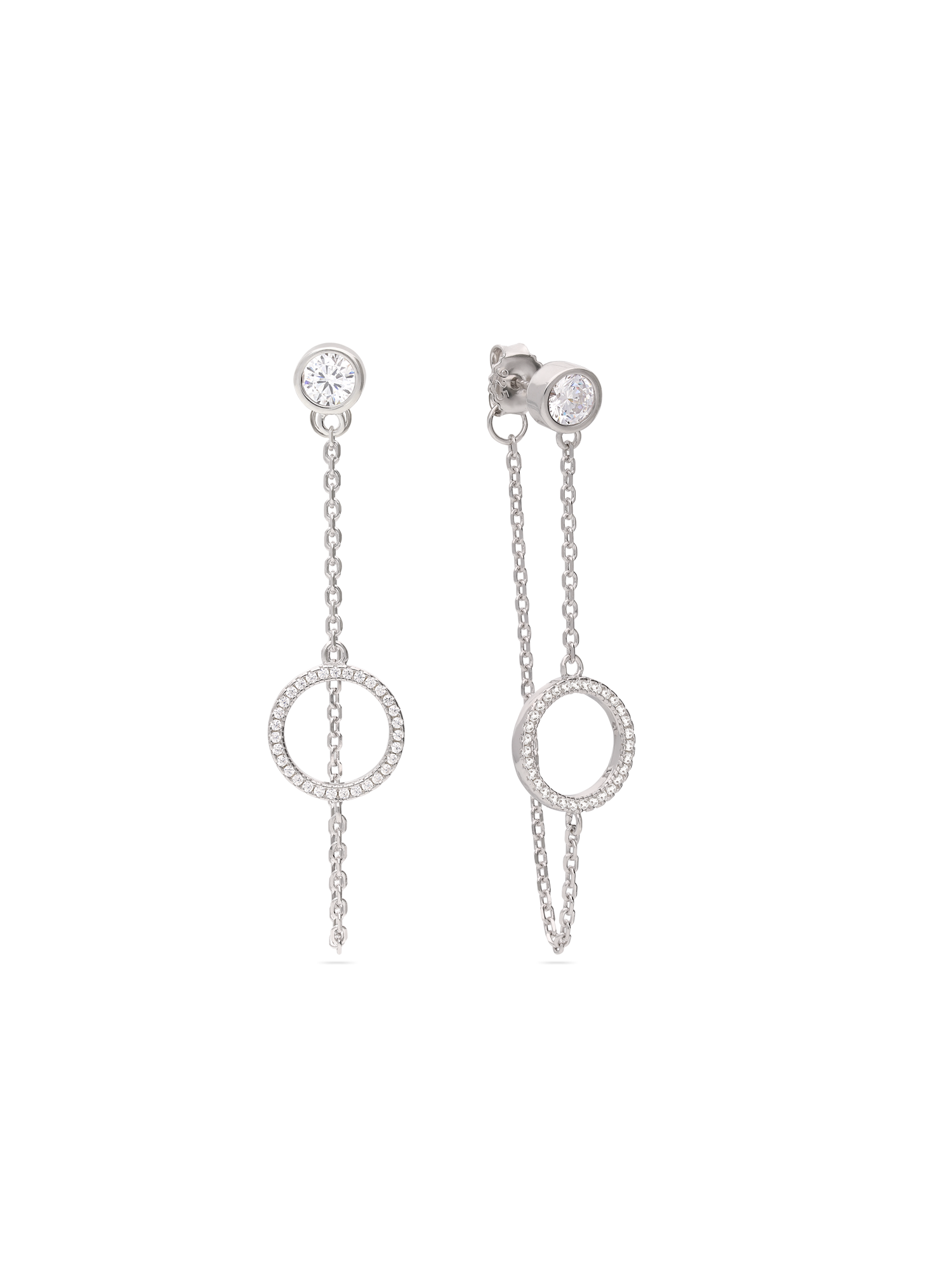 Pendentes, Prata de lei 925, Zircónia de cultivo, Claro, Círculo, Feito à mão,, Prateado, comprimento do brinco: 4.5 cm, largura do brinco: 1.2 cm, 4.70 gramas.