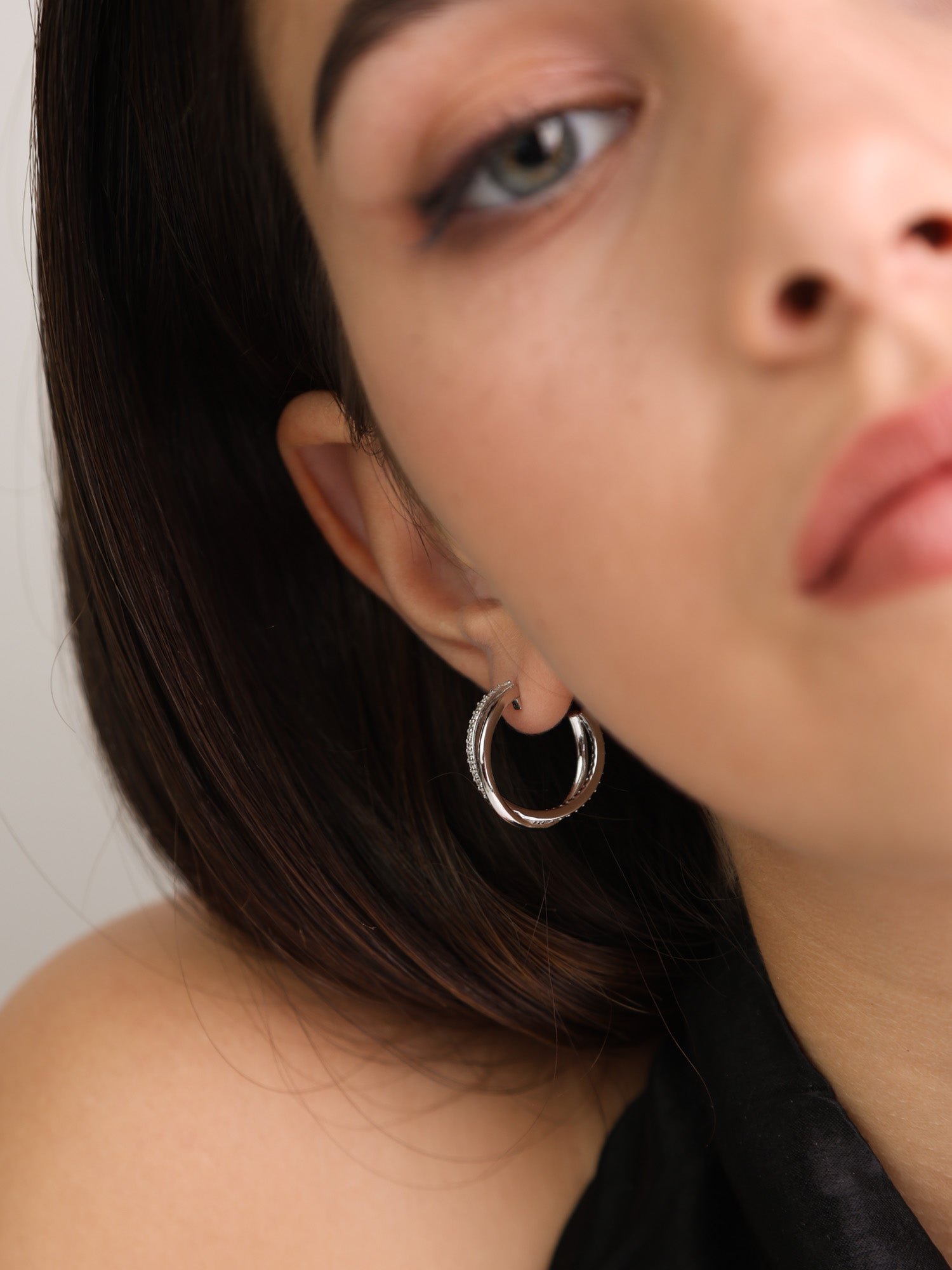 Descubra o brilho delicado das Argolas em Prata 925 com Zircónia de Cultivo. Com um design clássico e atemporal, estas argolas são a escolha perfeita para quem deseja adicionar um toque de sofisticação ao seu estilo. A prata de lei 925 combinada com a zircónia de cultivo cria um equilíbrio perfeito entre elegância e brilho discreto.