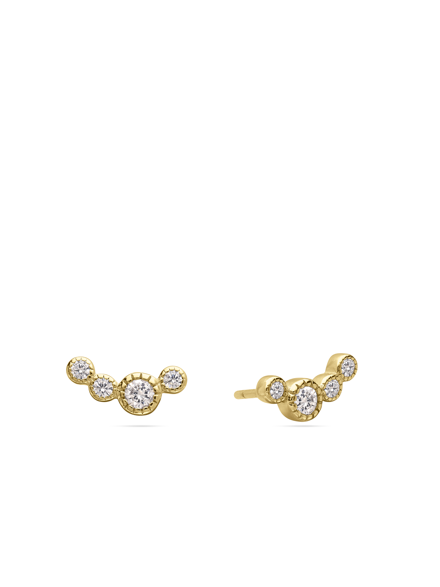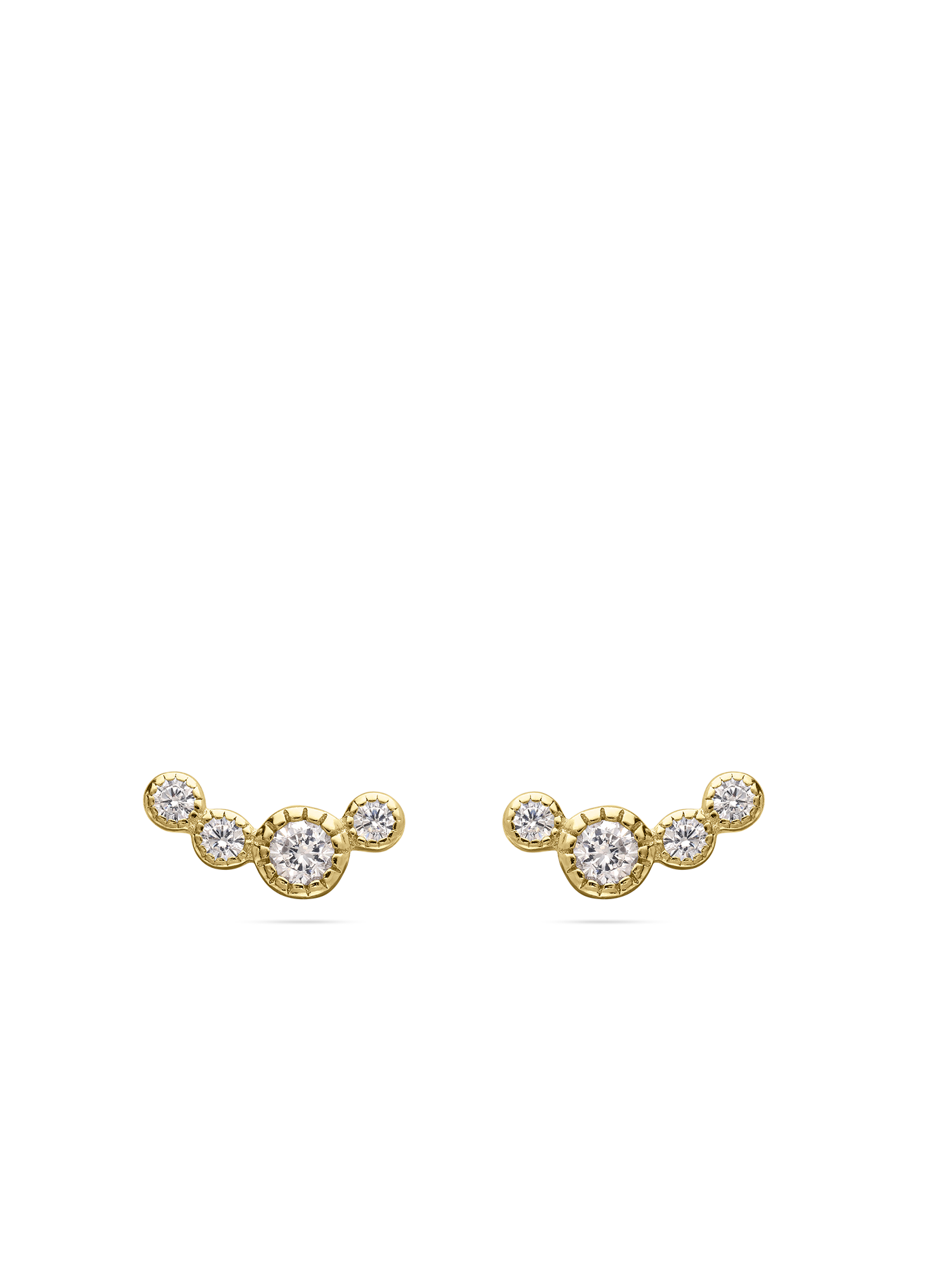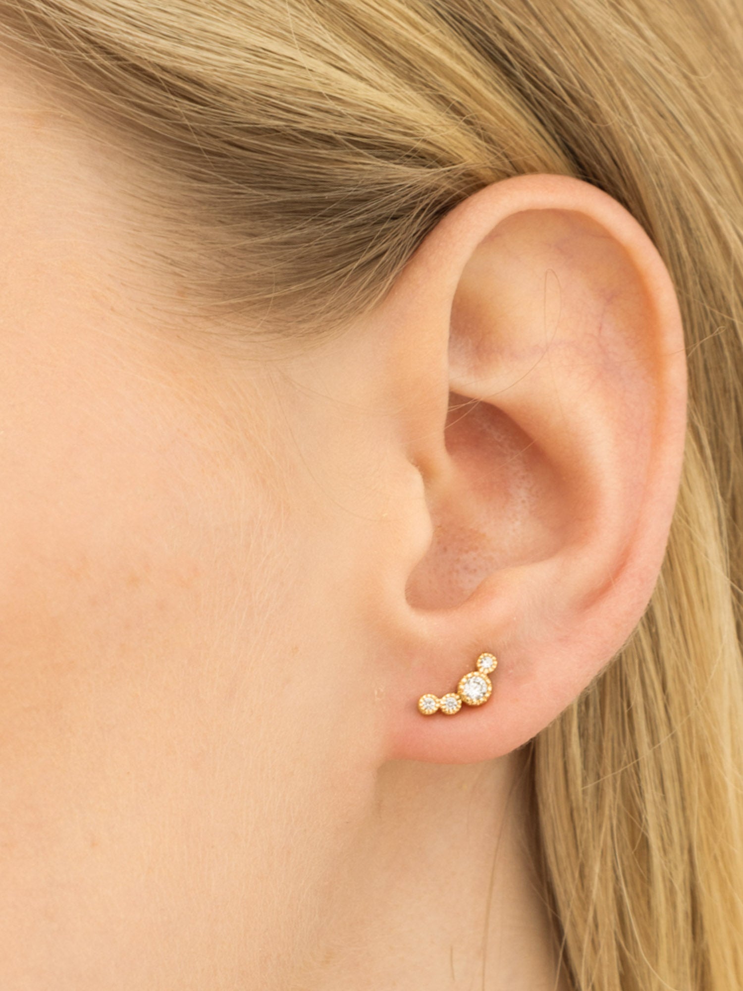 Brincos de placa, Banhado a Ouro, Zircónia de cultivo, Claro, Círculo, Feito à mão,, Dourado, comprimento do brinco: 1.5 cm, largura do brinco: 1.0 cm, 0.89 gramas.