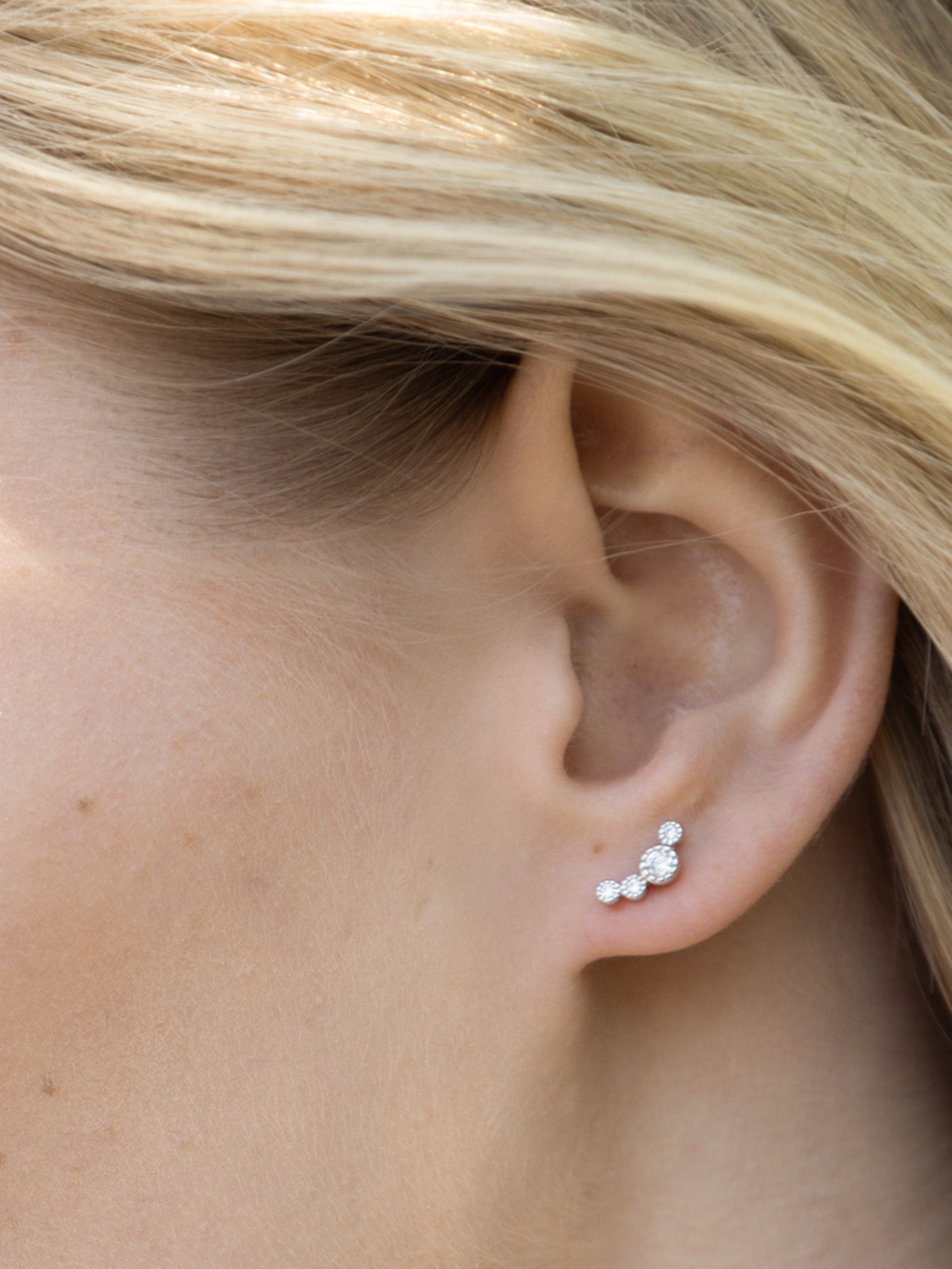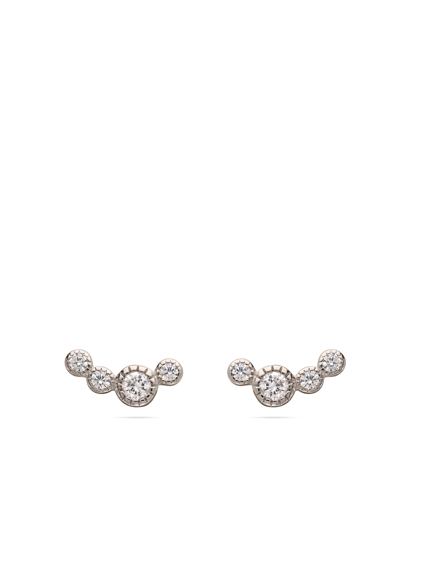 Brincos de placa, Prata de lei 925, Zircónia de cultivo, Claro, Círculo, Feito à mão,, Prateado, comprimento do brinco: 1.2 cm, largura do brinco: 1.0 cm, 1.10 gramas.