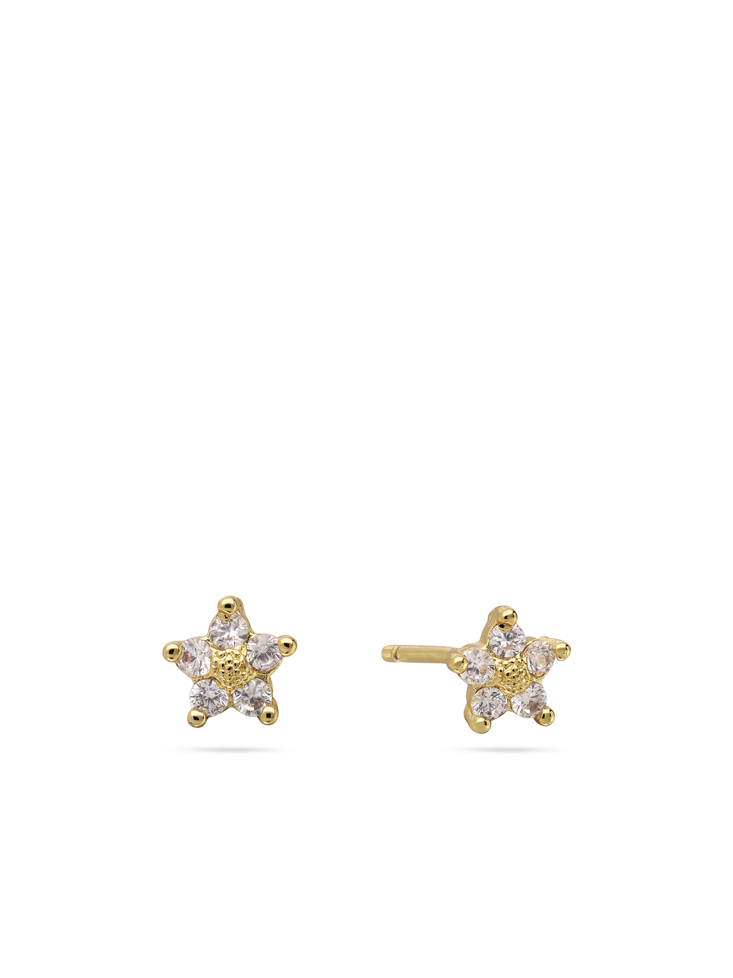 Brincos de placa, Banhado a Ouro, Zircónia de cultivo, Claro, Flor, Feito à mão,, Dourado, comprimento do brinco: 1.3 cm, largura do brinco: 0.5 cm, 0.88 gramas.