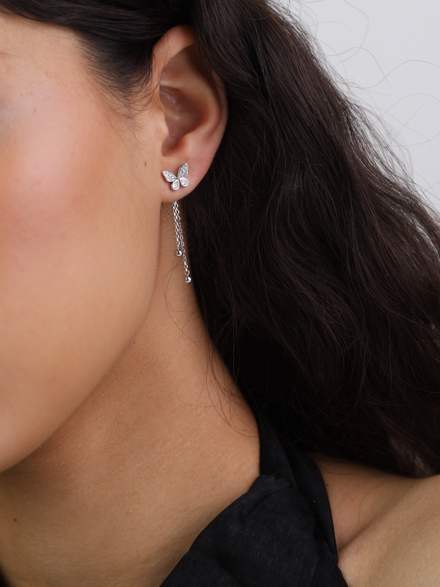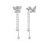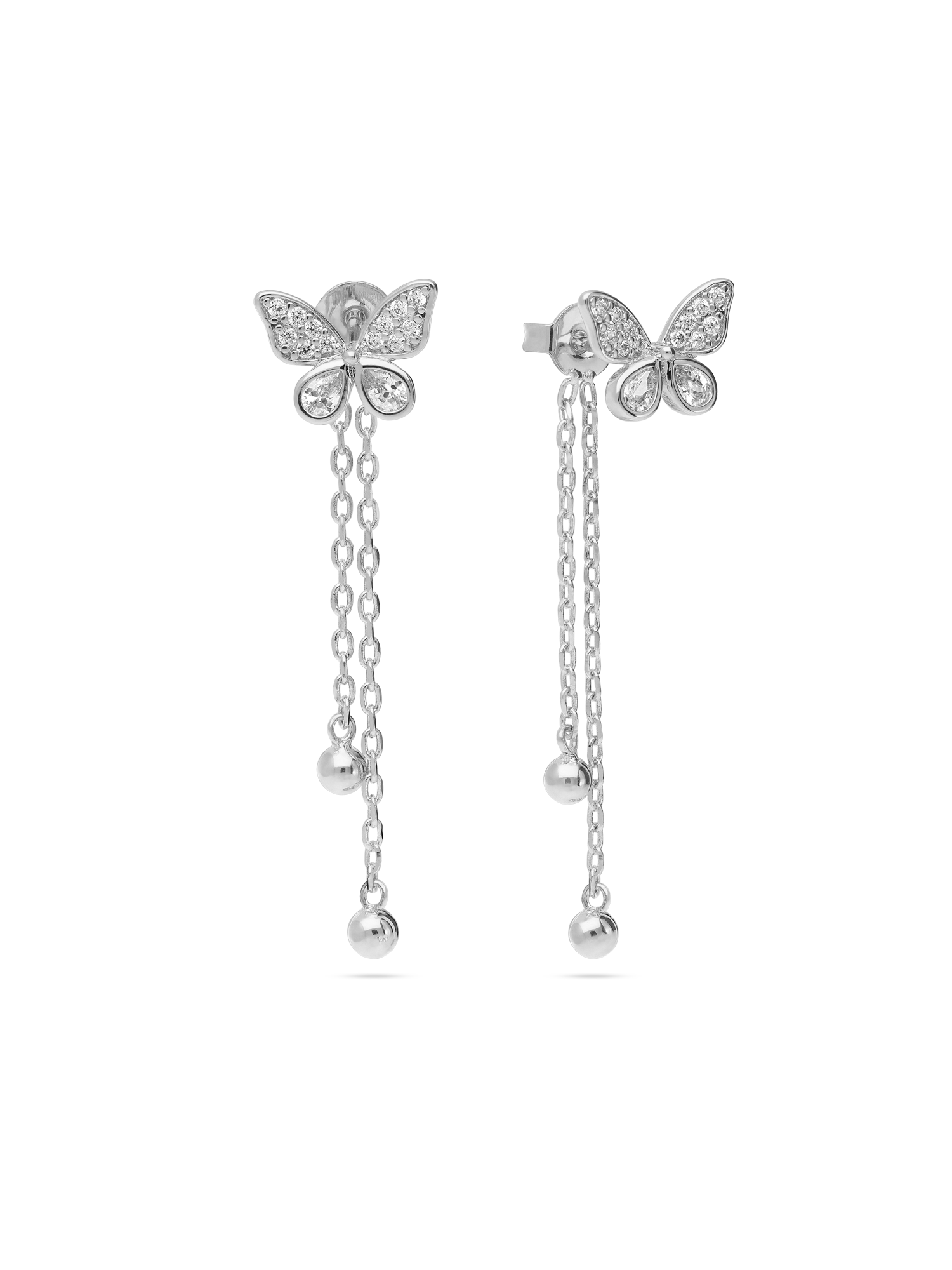 Pendentes, Prata de lei 925, Zircónia de cultivo, Claro, Borboleta, Feito à mão,, Prateado, comprimento do brinco: 4.0 cm, largura do brinco: 1.0 cm, 2.09 gramas.