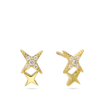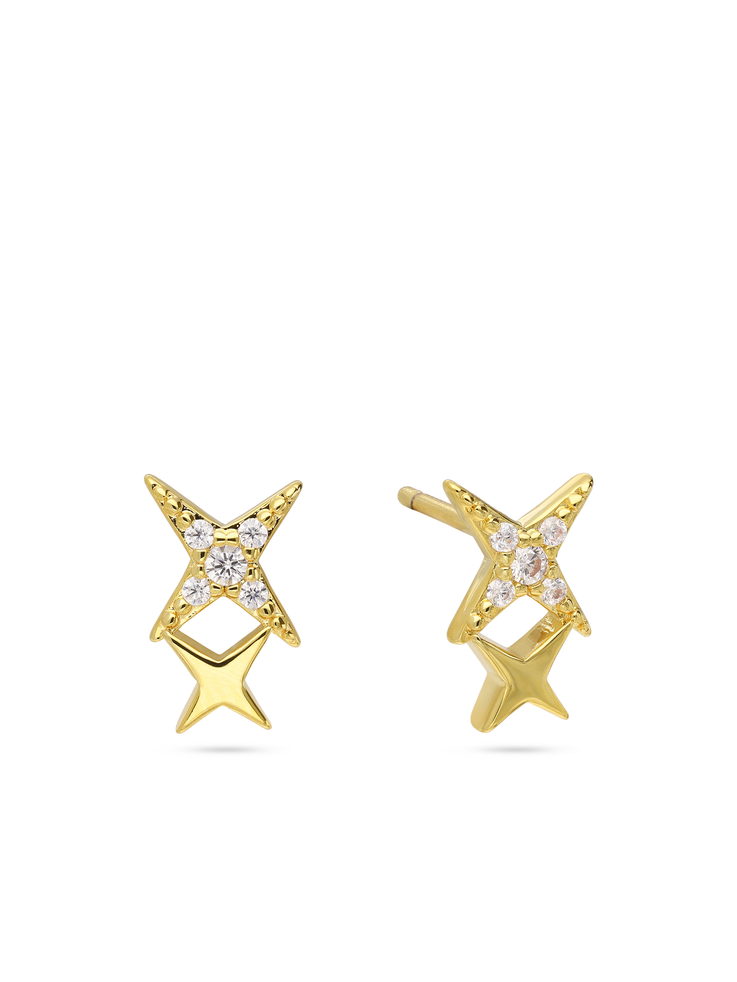 Brincos de placa, Banhado a Ouro, Zircónia de cultivo, Claro, Estrela, Feito à mão,, Dourado, comprimento do brinco: 0.6 cm, largura do brinco: 1.1 cm, 1.00 grama.
