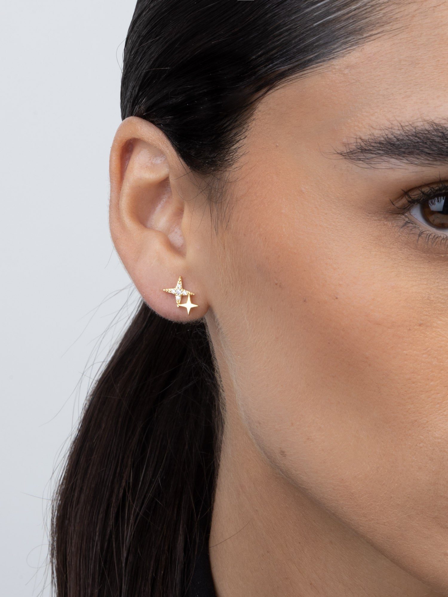 Brincos de placa banhados a ouro com zircónia e estrela