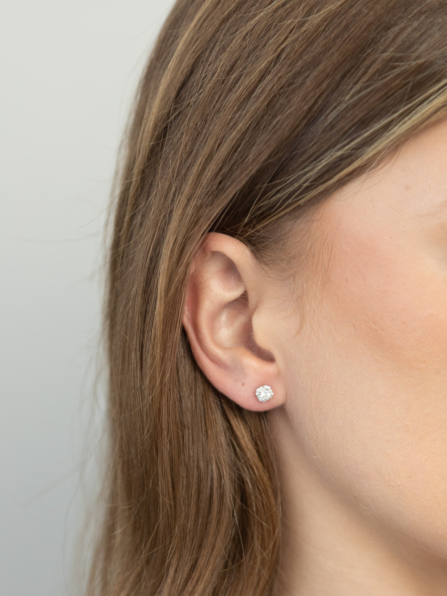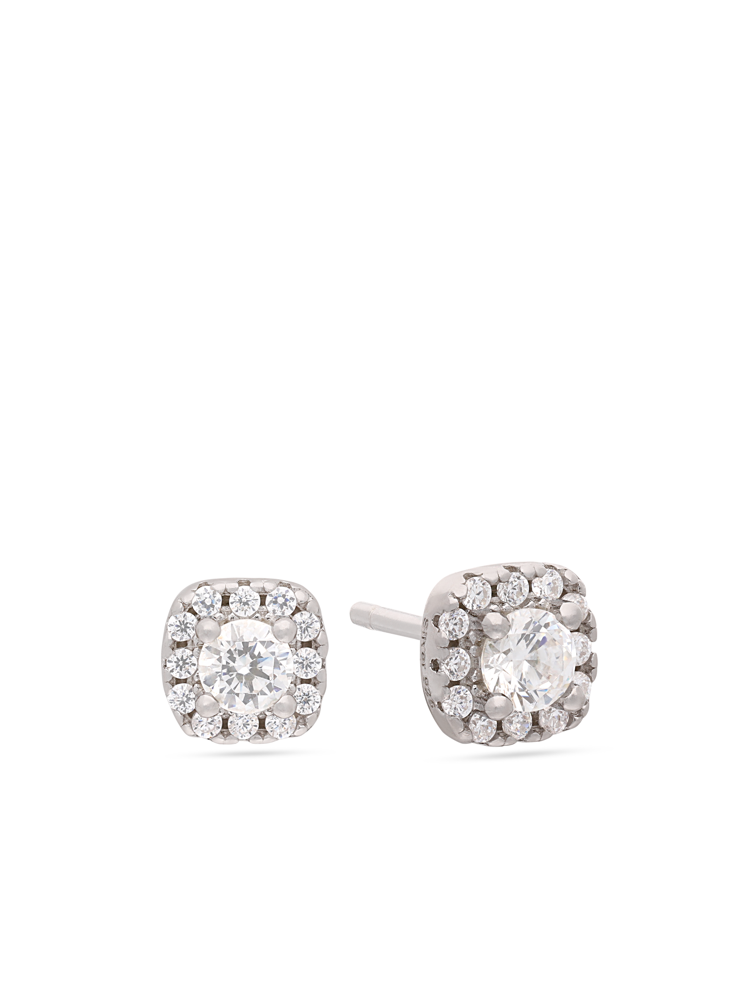 Brincos de placa, Prata de lei 925, Zircónia de cultivo, Claro, Quadrado, Feito à mão,, Prateado, largura do brinco: 0.5 cm, comprimento do brinco: 0.5 cm, 1.19 gramas.