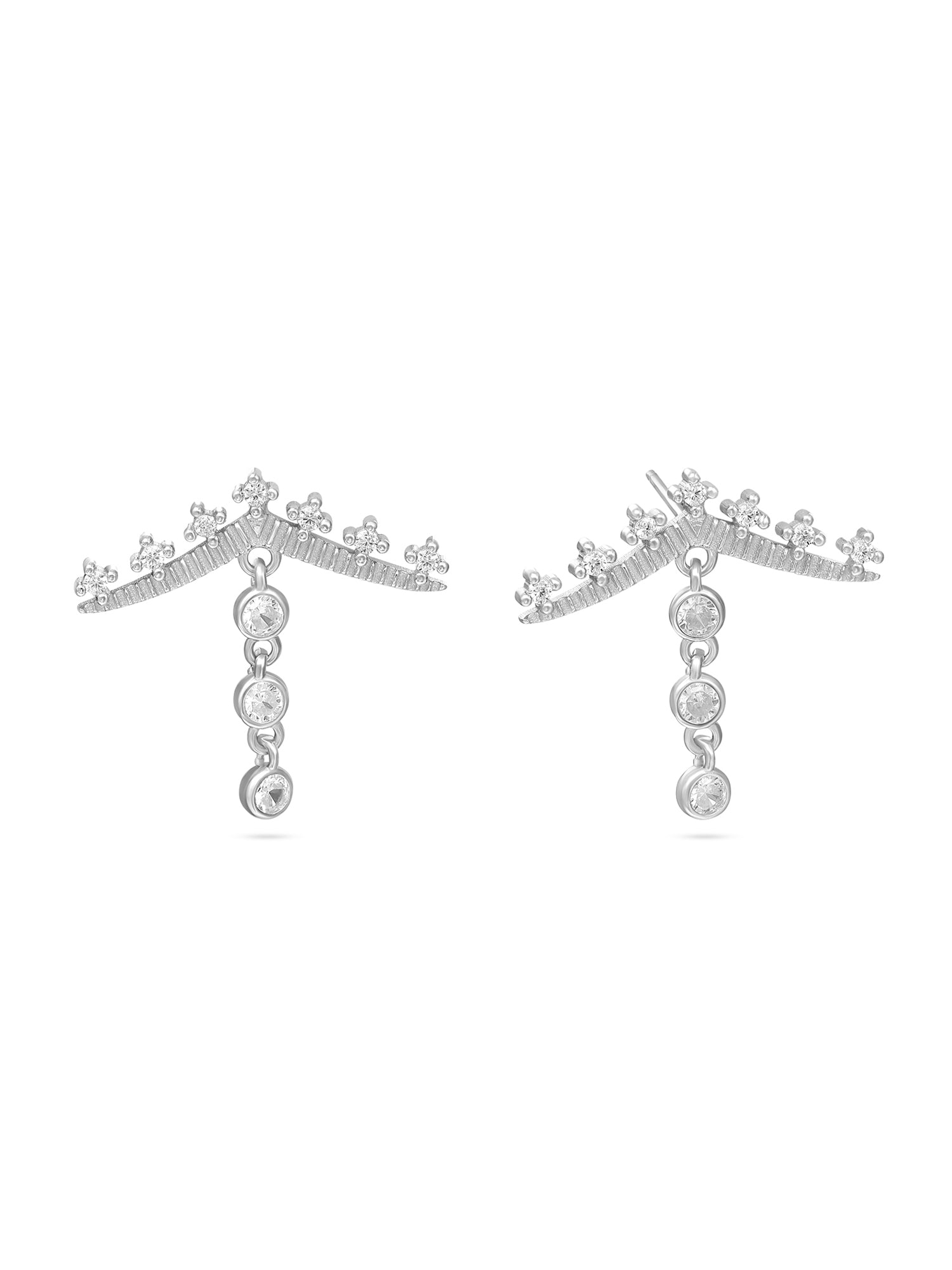 Brincos de placa, Prata de lei 925, Zircónia de cultivo, Claro, Variedade de formas, Feito à mão,, Prateado, comprimento do brinco: 2.1 cm, largura do brinco: 2.2 cm, 2.56 gramas.